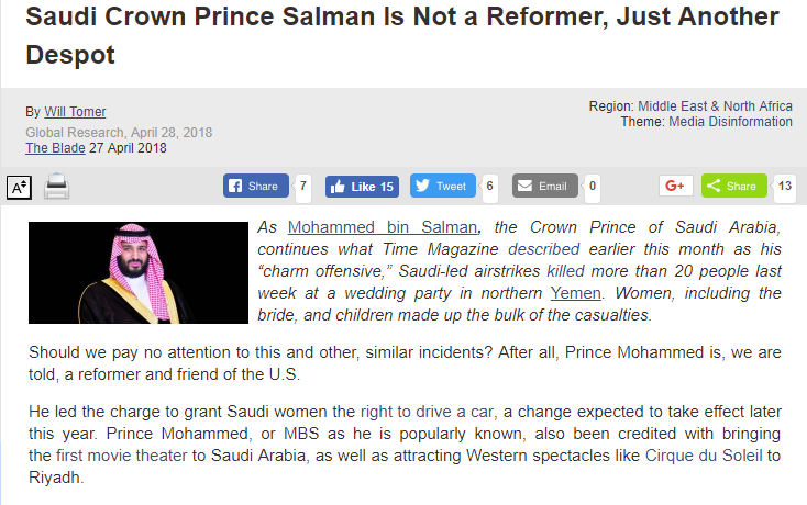 غلوبال ريسيرش: ولي العهد السعودي ليس من المصلحين.. هو مجرد مجرم حرب ومستبد آخر