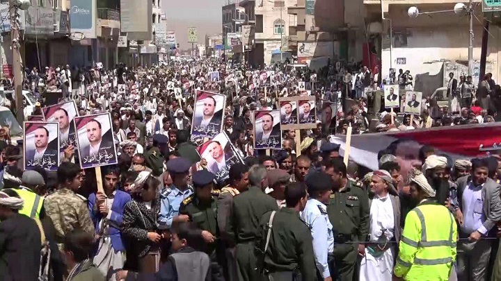 وعبر المتظاهرون عن غضبهم الشديد اتجاه جريمة اغتيال الشهيد الرئيس صالح على الصماد.