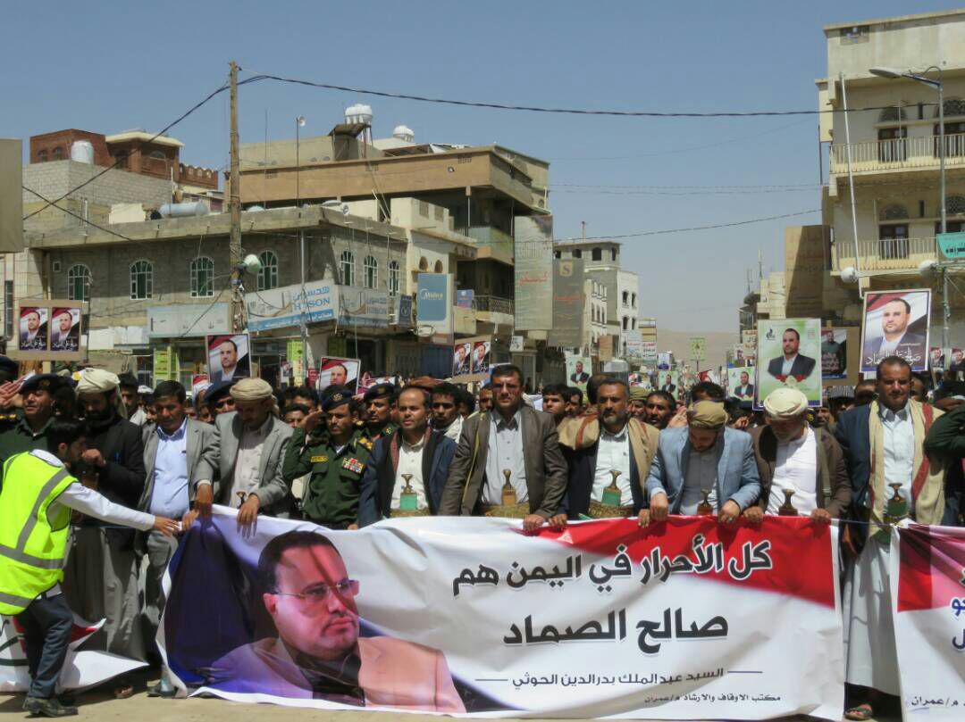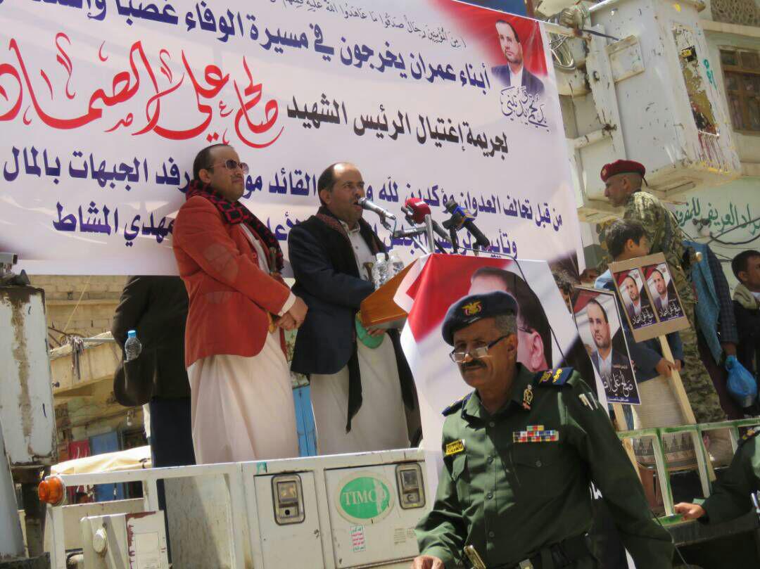 مظاهرة حاشدة في عمران تنديداً بجريمة إغتيال الرئيس الشهيد صالح الصماد (صور)
