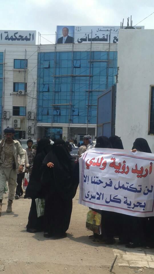 ورفعت المحتجات صوراً لذويهم المخفيين قسراً منذ ثلاث سنوات، ولافتات احتجاجية كتبت عليها عبارات تجدد مطالبتها لتحالف العدوان، بمقدمتها بالكشف عن مصير أبنائهن في عدن، وتقديمهم للمحاكمة بعد توجيه التهم إليهم، أو إطلاق سراحهم إذا لم يتم إدانتهم بأي جناية.