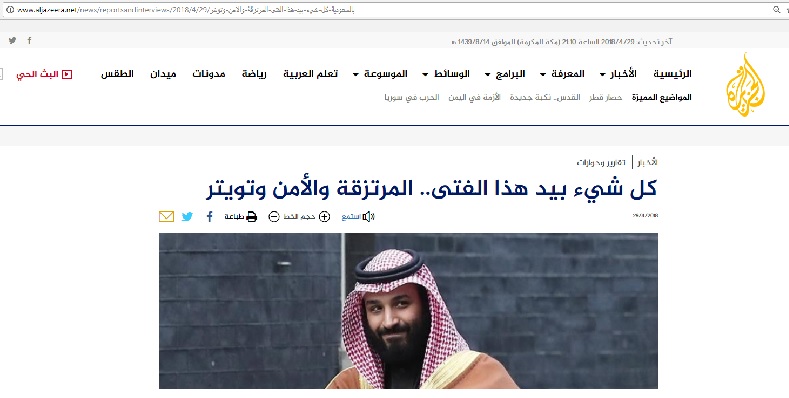 قنـاة الجزيـرة تطلـق وصفـاً مثيـراً على ابـن سلمـان وتشعـل جـدلاً ساخنـاً + (صـورة)