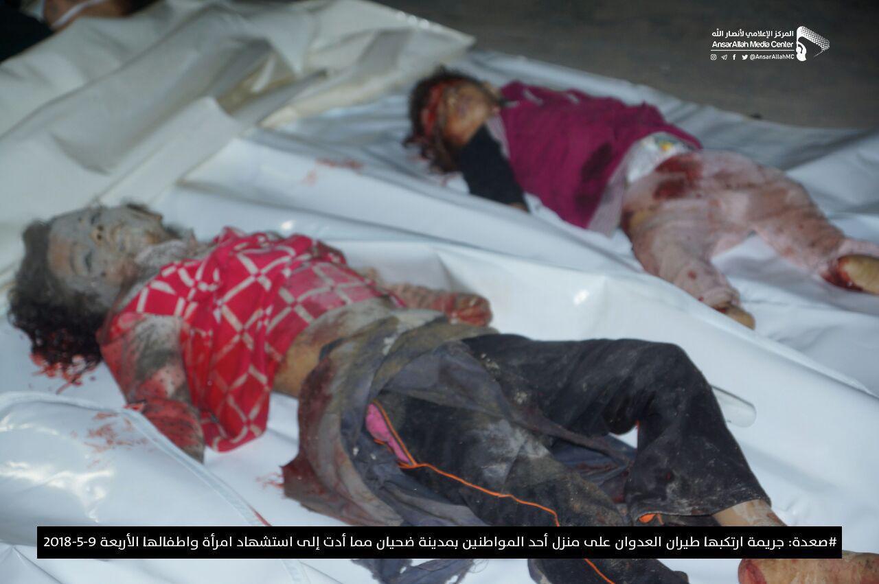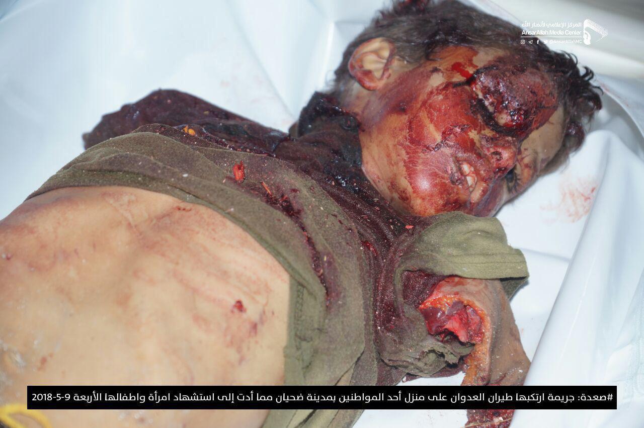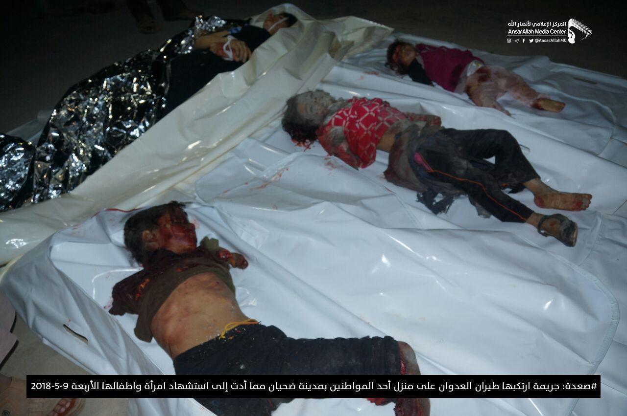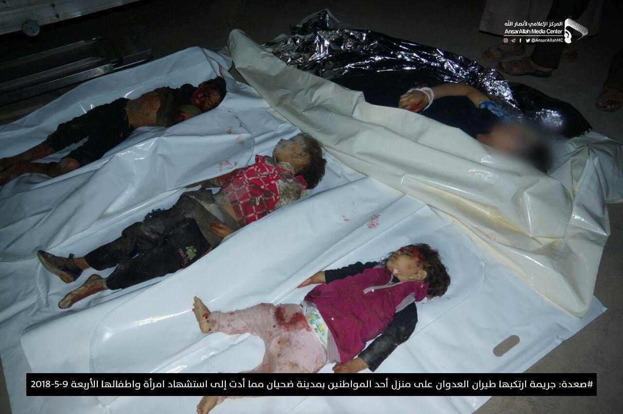وأفاد مصدر محلي، عن استشهاد امرأة وأولادها الاربعة بغارة لطيران العدوان استهدفت منزل أسرة المواطن محمد عبدالعظيم اللبلوب في مدينة ضحيان بمديرية مجز.