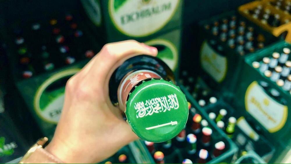 زجاجات كحولية عليها علم السعودية تثير غضب الشعب السعودي + (صور)