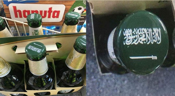 أثارت الصور التي تداولها نشطاء على موقع “تويتر” والتي تظهر علم السعودية على منتجات كحولية ألمانية، غضب الشعب السعودي.