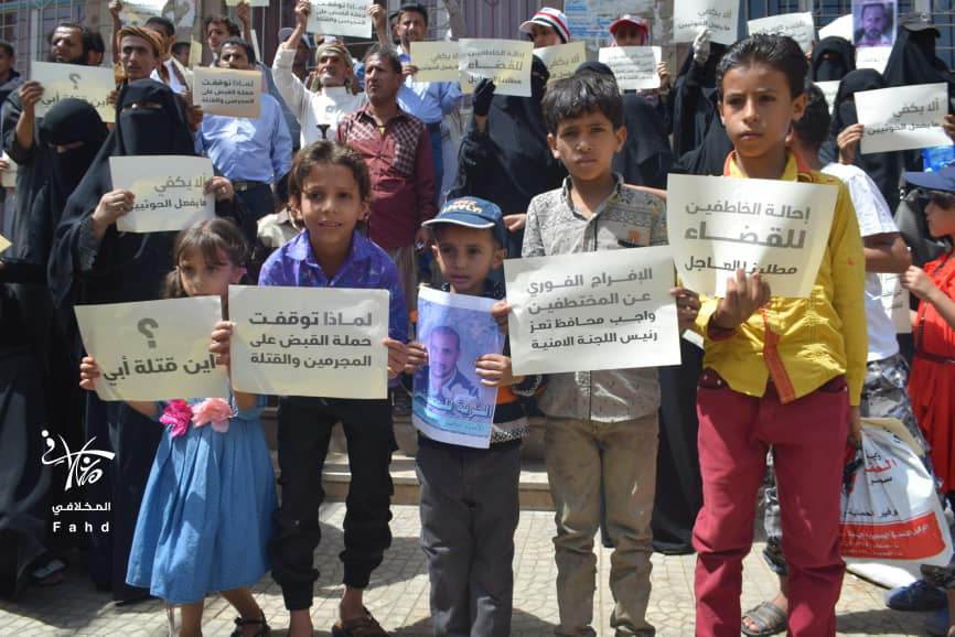 أكثر من مائة مختطف يقبعون في سجون “أبو العباس” بمدينة تعز.. ووقفة إحتجاجية لأسرهم تطالب بسرعة الإفراج عنهم (صور)