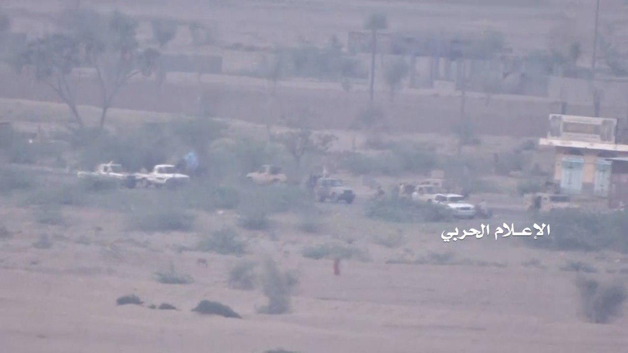 وتظهر مشاهد الإعلام الحربي لحظة إستهداف تجمع لآليات ومدرعات مرتزقة العدوان بينها سيارة صالون بيضاء نوع “لاند كروزر” بصاروخ موجه في جبهة الساحل الغربي.