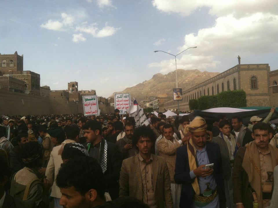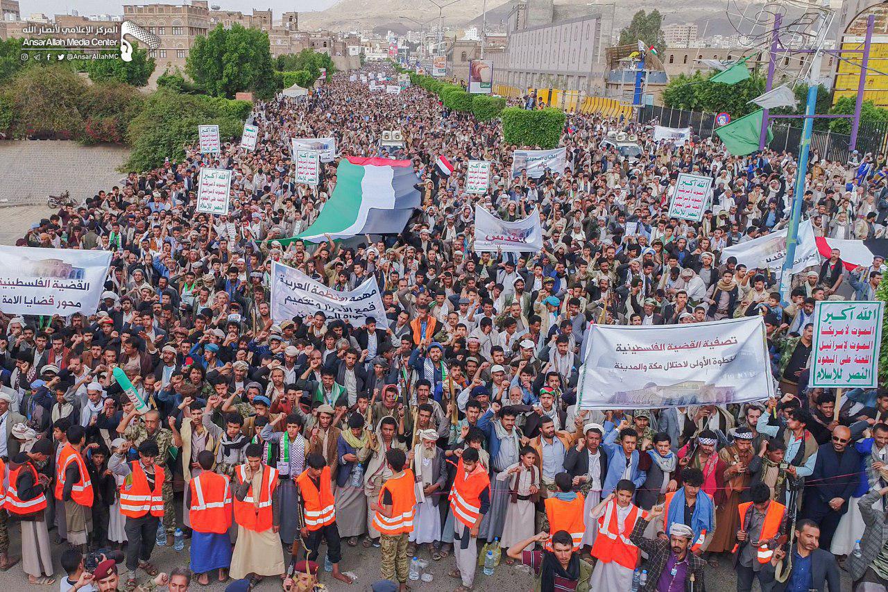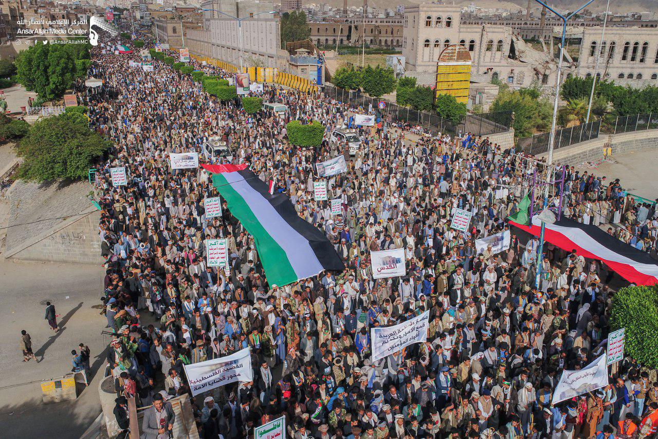مسيرة شعبية حاشدة في العاصمة صنعاء تضامناً مع فلسطين ومنددة بنقل السفارة الأمريكية للقدس (صور)
