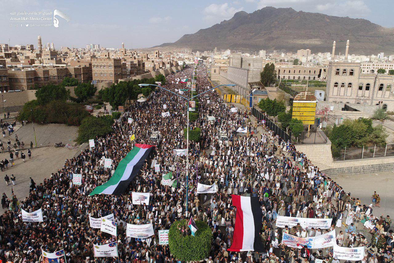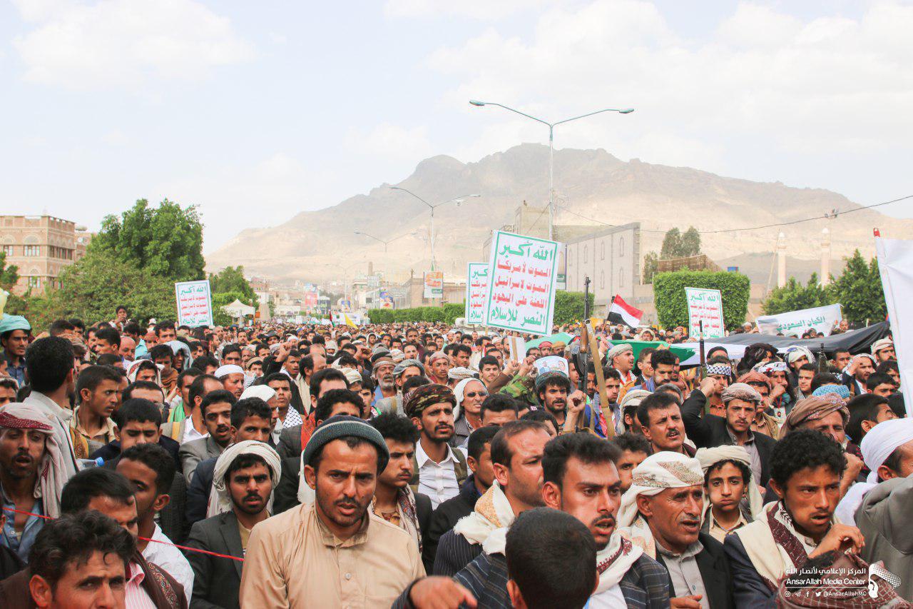 شهدت العاصمة صنعاء، عصر اليوم الثلاثاء، مسيرة شعبية حاشدة في ساحة باب اليمن تضامناً مع الشعب الفلسطيني وقضيته العادلة تحت شعار “تموت أمريكا وإسرائيل وتحيا القدس”.