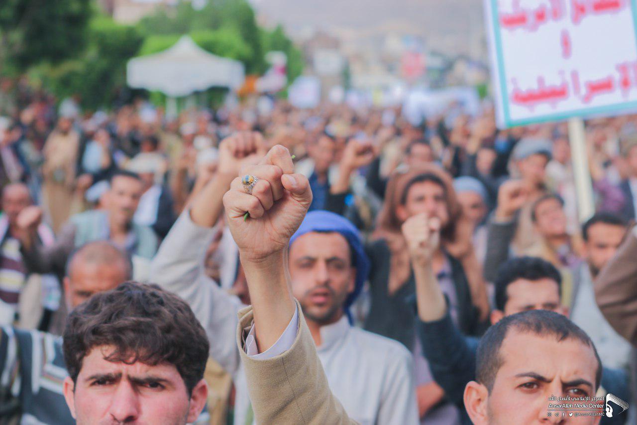 وحمل المشاركون في المسيرة الأنظمة العربية المنبطحة ومشيخات الخليج المسؤولية الكاملة فيما يحدث من انتهاكات وجرائم بحق الشعب الفلسطيني وتجريف للأرض والمقدسات من قبل العدو الصهيوني ومن خلفه أمريكا.