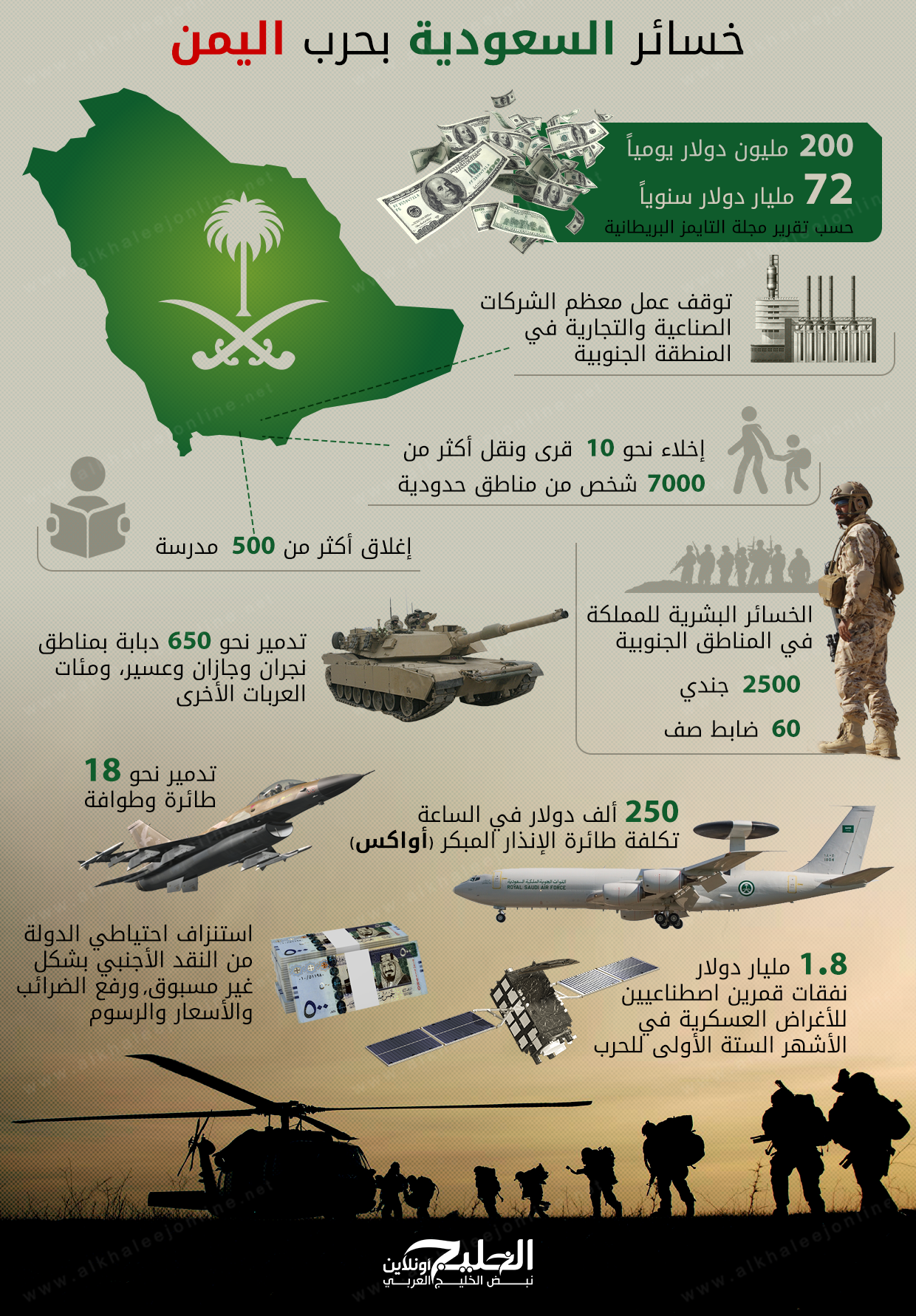 خسائـر السعوديـة فـي العـدوان علـى اليمـن .. (إنفوجرافيك)