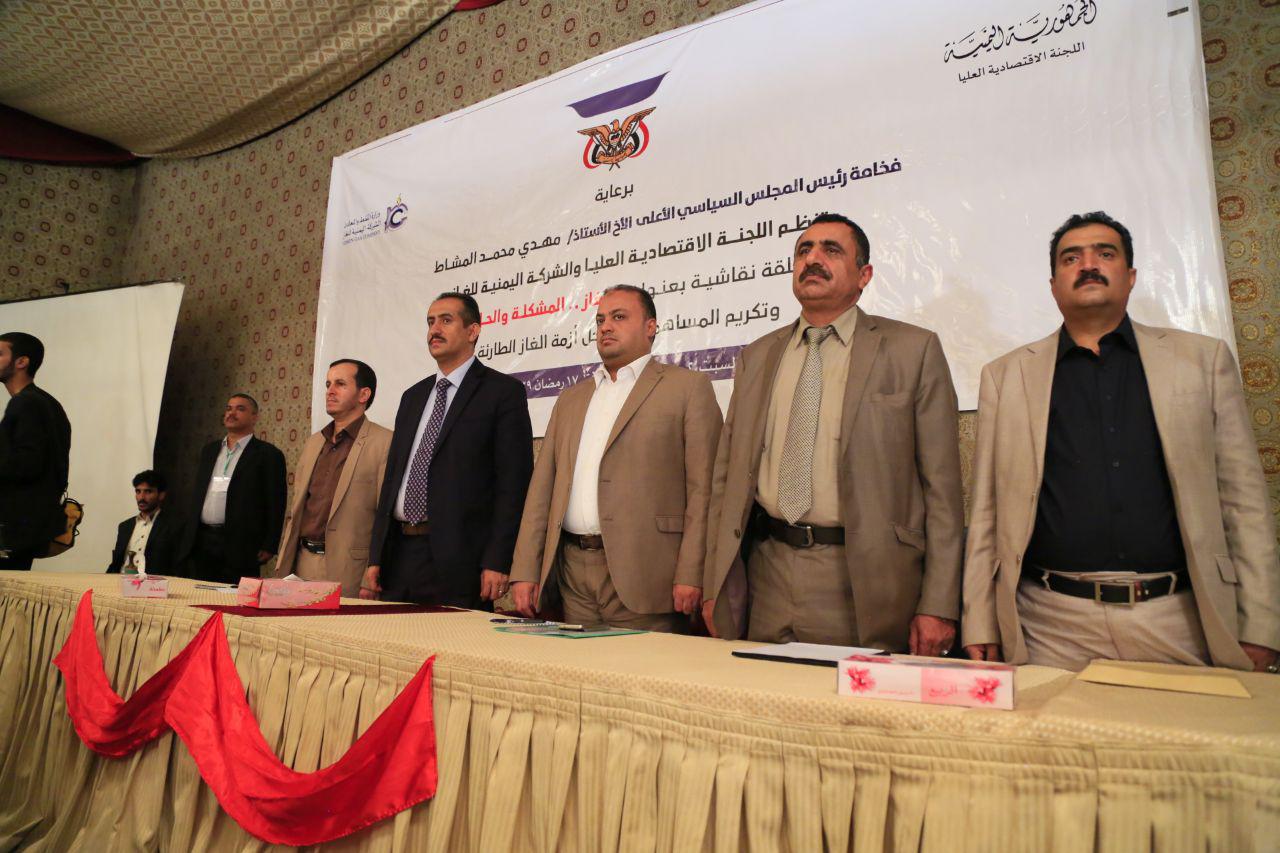 وفي الحلقة النقاشية استعرض نائب المدير العام التنفيذي للشركة اليمنية الغاز محمد القديمي، الصعوبات التي واجهت العملية التموينية لمادة الغاز المنزلي والمتمثلة في انتشار الأحواش والطرمبات العشوائية وغير المرخصة بأمانة العاصمة وبقية المحافظات وتوقف تموين منشآت الشركة في ذمار والحديدة وعمران ودخول عدد كبير من المركبات والمعدات والآلات العاملة بالغاز.