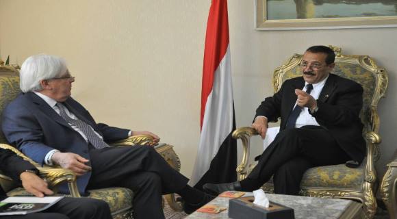 التقى وزير الخارجية المهندس هشام شرف و نائب وزير الخارجية حسين العزي، اليوم الأحد، بصنعاء المبعوث الخاص للأمين العام للأمم المتحدة إلى اليمن مارتن غريفيث .