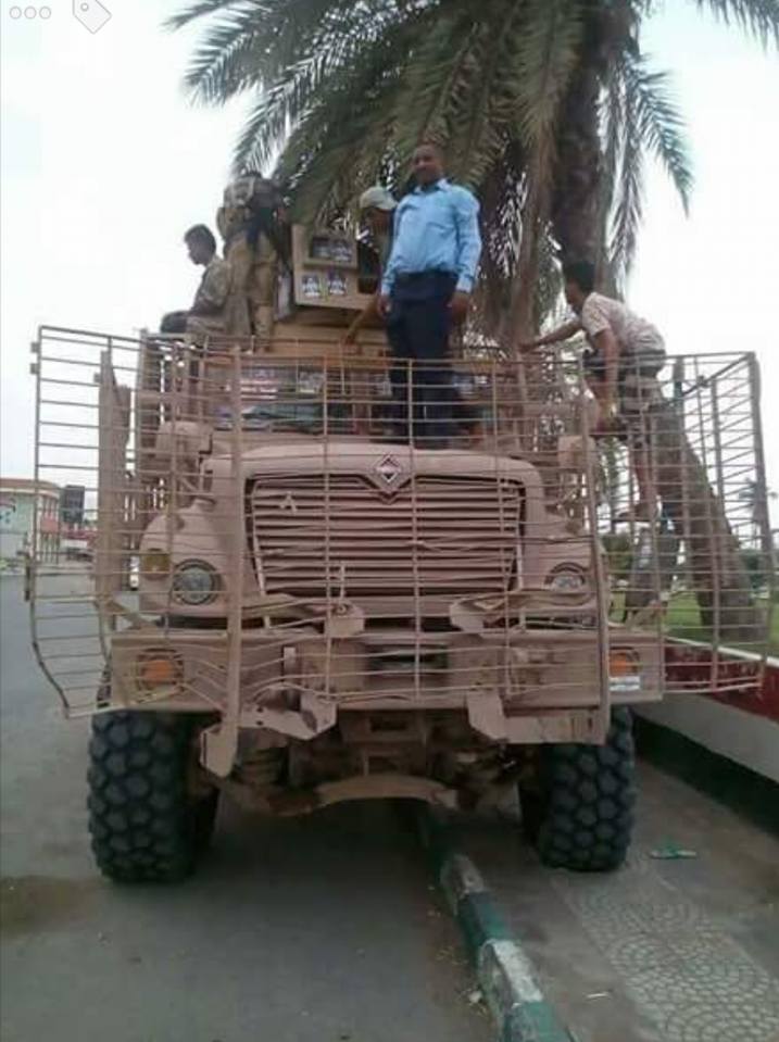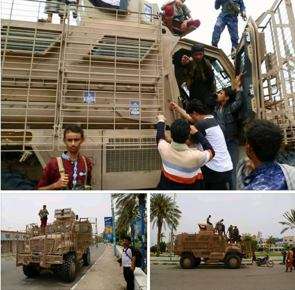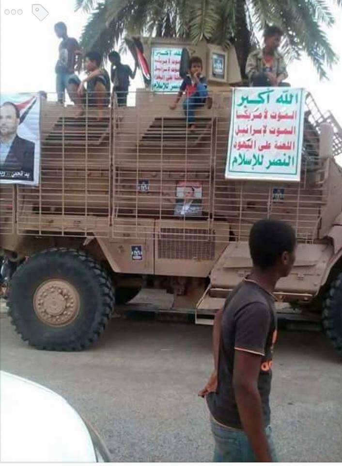 ويظهر في المدرعات الإماراتية الذي قادها ابطال الجيش واللجان الشعبية إلى مدينة الحديدة وقد رفع عليها علم اليمن وشعار “انصار الله ”