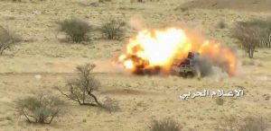 نشر الاعلام الحربي تقرير مفاده أن الجيش واللجان الشعبية دمّروا اليوم الخميس 21 آلية تابعة لمرتزقة العدوان في كسر زحف وعملية بطولية على مواقع المرتزقة في الجوف، ليبلغ عدد الآليات التي دمرت خلال72 ساعه مضت في الجوف إلى 29 آلية، بعد عملية استدراج المرتزقة في جبهة المهاشمة الثلاثاء الماضي، والتي تم خلالها تدمير 8 آليات.
