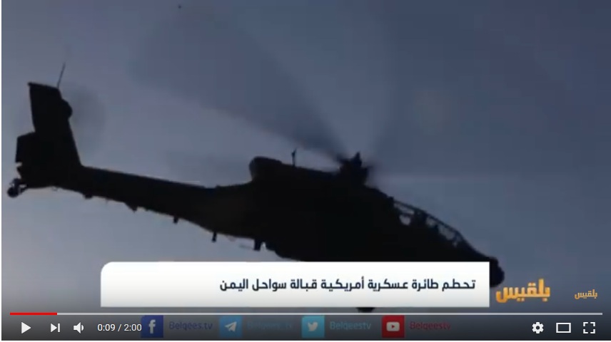 فيما هي تعترف بنفسها وتؤكد الوجود العسكري الأمريكي في اليمن، كما هو الحال في التقرير الذي تناولته قناة بلقيس التي تديرها القيادية الإخوانية في حزب الإصلاح توكل كرمان والذي نُشر في أغسطس من العام الماضي تعليقاً على خبر تحطم مروحية أمريكية قبالة السواحل اليمنية ومقتل أحد الضباط أثناء ما كانت المروحية تنفذ مهمة تدريبية في اليمن.