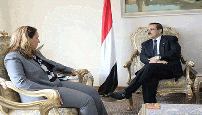 التقى وزير الخارجية المهندس هشام شرف يوم أمس الثلاثاء ، مديرة مكتب المبعوث الخاص للأمين العام للأمم المتحدة إلى اليمن بصنعاء نيقولا ديفيز.