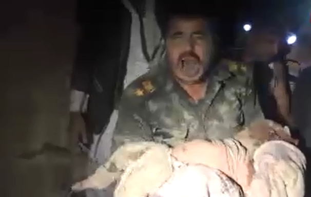 واحتوت المشاهد لحظة قيام المسعفين بانتشال جثث الضحايا من بين أنقاض المنزل المُدمّر وغالبيتهم أطفال، ولم يستطع أحد ضباط الأمن أن يتمالك نفسه لحظة انتشاله جثّة أحد الأطفال وقام بذرف الدموع في الوقت الذي تعهّد بالانتقام من مرتكبي المجازر بحق المدنيين والأطفال.