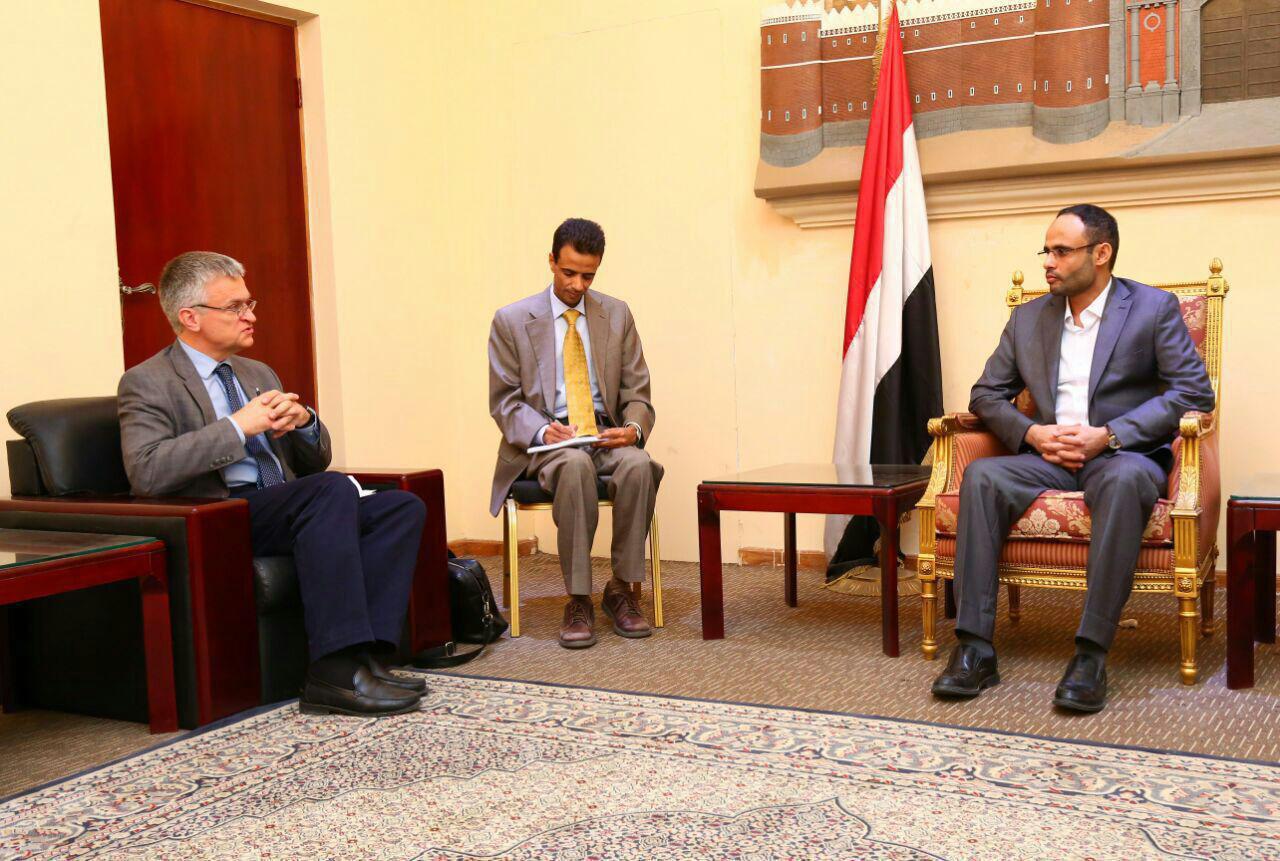 استقبل مهدي المشاط رئيس المجلس السياسي الأعلى اليوم السبت، المبعوث الخاص لوزارة خارجية مملكة السويد إلى اليمن وليبيا السفير بيتر سيمنبي.
