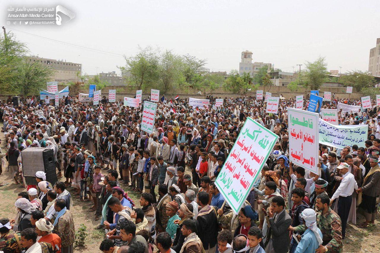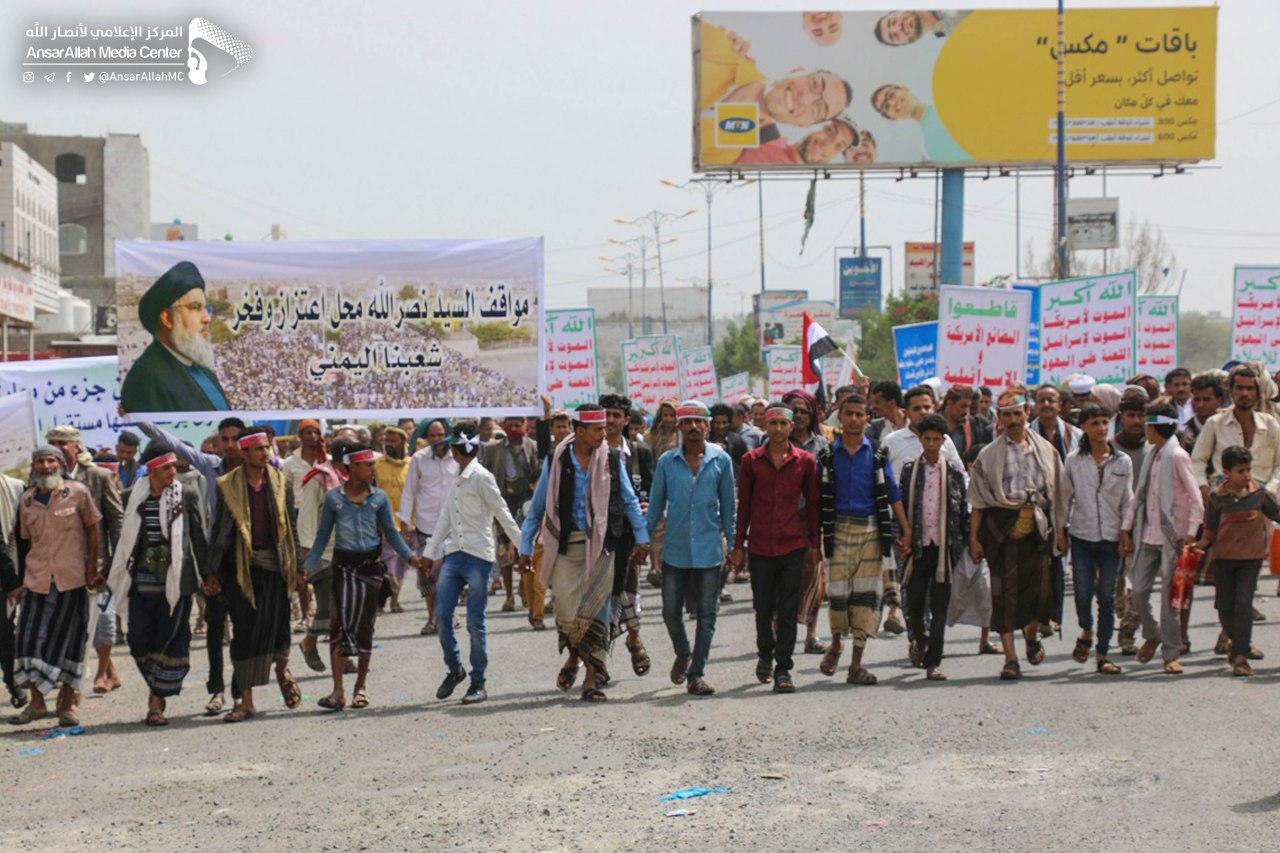 من جانبه، ألقى عضو المكتب السياسي لأنصار الله، ضيف الله الشامي، كلمة أكد فيها على خصوصية وتميز مسيرة أبناء تعز وإب باعتبارهم جبهة واحدة في مواجهة هذا العدوان المستمر على الوطن والشعب، على الرغم من محاولات التضليل في موقف العدوان على الحديدة.