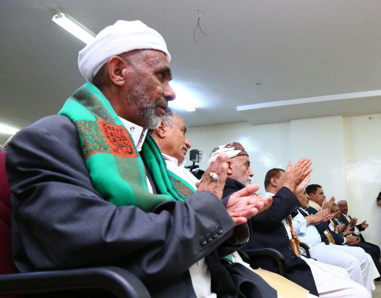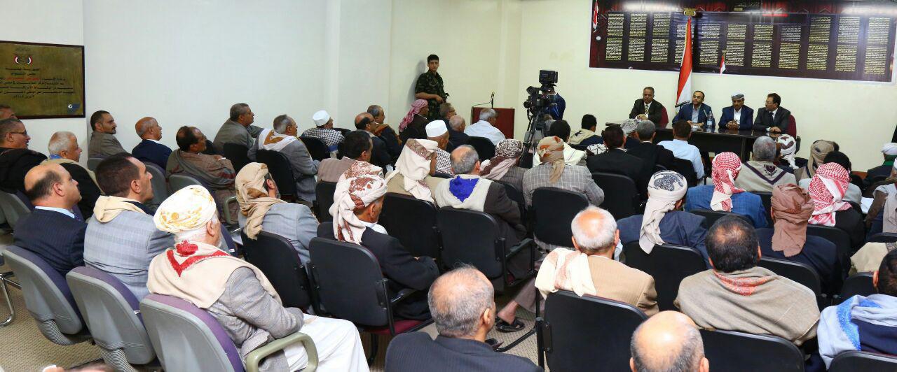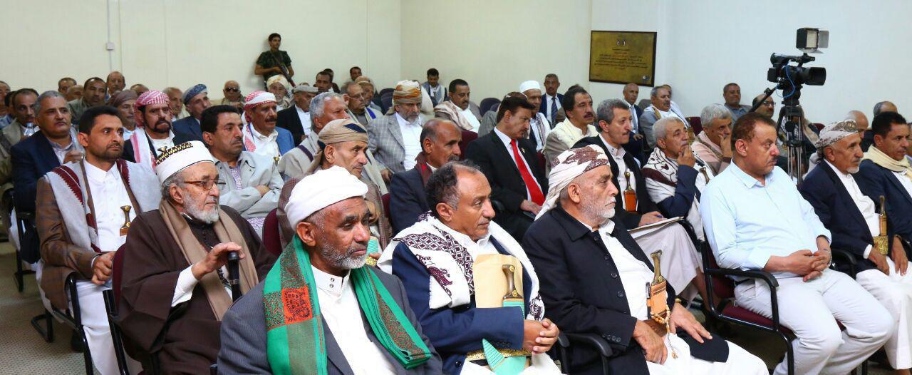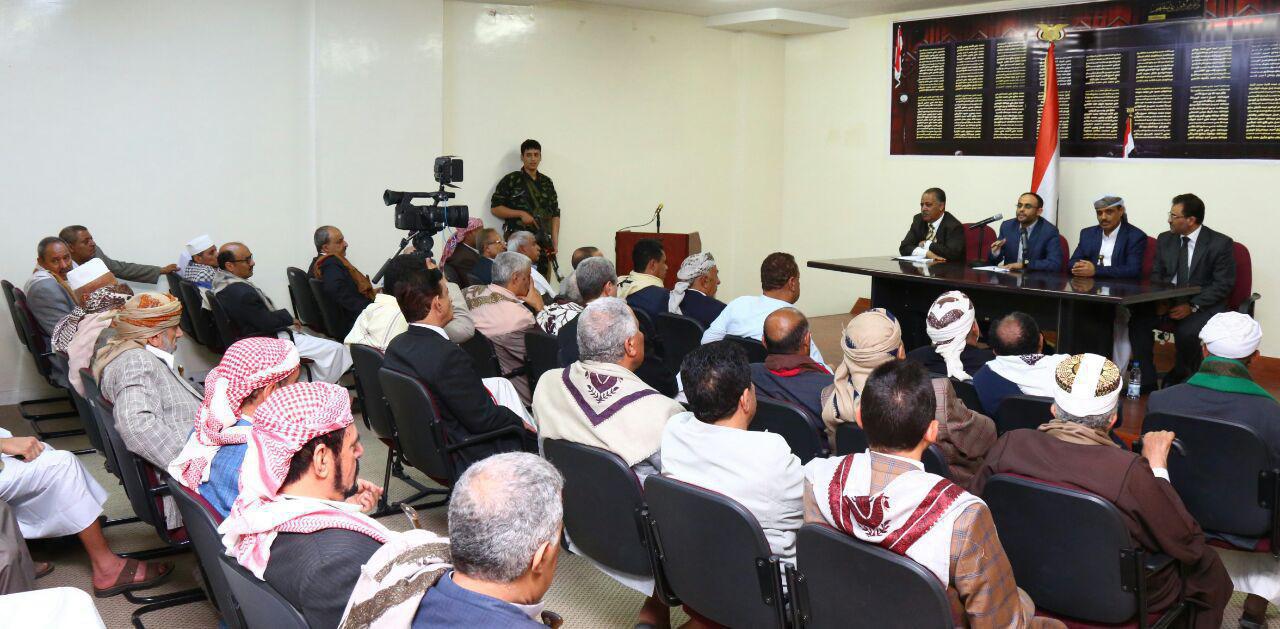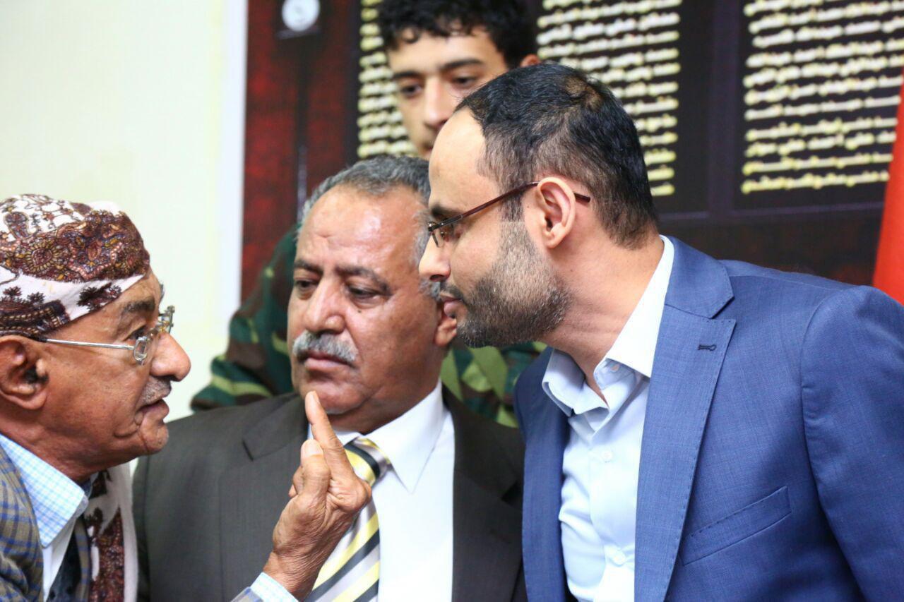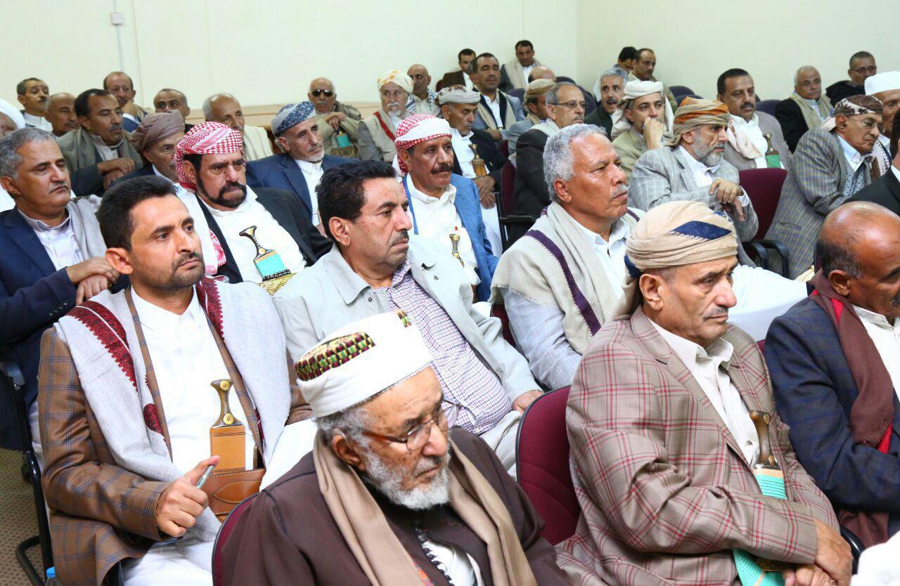 انتم تعرفون ماهي اهداف هذا العدوان على بلدنا اكثر مني ،العدوان جاء على بلدنا لا يستهدف شخصاً دون آخر ،ولا يستهدف مكونا دون آخر ،العدوان أتى ليستهدفنا في استقرارنا واستقلالنا أتى لأنه يريد ان يركعنا ويخضعنا ونحن بإسم اليمن كما تحدث الشيخ يحيى رفضنا هذا الهدف لهذا العدوان ،وقررنا ان نقرر نحن مصيرنا وان نقرر ونثبت استقرارنا وان يكون لنا ارادتنا واستقلالنا هذا هو قرارنا وكان وراء هذا القرار العدوان الذي مورس بحق هذا البلد ومهما كانت نتائج هذا العدوان إزاء اتخاذنا لهذا القرار لا نبالي بالنتائج مهما كانت لأننا نعرف ان موقفنا هو الصواب وجميع الشرائع والأديان والقوانين والمواثيق والمعاهدات الدولية تكفل لنا حق اختيار قرارنا واستقلال قرارنا ونحن مهما كانت النتائج لا نأسف مهما كانت النتائج لأننا لم نفرض التحدي هم فرضوا علينا هذا التحدي والله ودينة وقرآنه يأبون لنا ان نقبل بهذا القرار الذي يريدون فرضه علينا ودماء الشهداء تفرض علينا ان لا نقبل به وقبضات فوهات اللهب التي شاهدناها على اكتاف الشهيد حسن الملصي وحذاء الشهيدة اشراق الطالبة في مدرسة نهم الذي استهدفها العدوان وهي في طريقها الى المدرسة وصراخ الطفل سميح في محافظة حجة وانين الأطفال في العرس في الجريمة الأخيرة في هذا الأسبوع في منطقة غافرة كل هذه الدماء الطاهرة التي لا استطيع عدها هي تأبى لنا ان نقبل وان نخضع او نقبل او نسلم رقابنا لهولاء الطغاة المجرمين، فديننا وكرامتنا وتضحيتنا تأبى لنا ذلك، ونحن مستعدون ومتقبلون للنتائج مهما كانت لان قرارنا هو الصواب وموقفنا هو الصواب نحن معنيون في هذا الصدد بعد ان قررنا مصيرنا ورسمنا وفرضنا قرارنا واخترنا طريقنا في كيف ان نعزز صمودنا كلا بما لديه نعزز صمودنا في دعم جبهاتنا ايضاً نعزز صمودنا في وحدة صفنا نعزز صمودنا في تراحمنا فيما بيننا، فهل نحن نتصور بأن احد سيرحمنا ان لم نرحم انفسنا؟ العدوان جاء بقبضه وقضيضه يريد ان يدمر الأخضر واليابس لا يستثني احد دون احد يريد ان يستهدف الجميع فنحن معنيون بهذا الشيء بتعزيز الصمود تعزيز اللحمة الوطنية تعزيز وحدة الصف وعليكم تقع المسئولية فأنتم جميعاً زعامات قبلية انتم جميعاً زعامات سياسية انتم جميعاً زعامات اجتماعية انتم جميعاً رجال دولة بكل ما تعنية الكلمة عليكم مسئولية كبيرة في عدة اتجاهات في السياسة في الاجتماع في الإدارة في كل ما يحقق هذا الصمود في كل ما يعزز وحدة الكلمة ووحدة الموقف فعليكم هذه المسئولية تقع بحكم حجمكم وموقعكم في هذا الوطن الغالي فارفعوا الهمم ووحدوا الصفوف وعالجوا الاختلالات وعلموا هذا المجتمع دروس في كيف نتسامى على الجراح في كيف نتسامح في كيف نترفع عن القضايا الثانوية ايضاً ونحرص على الكلمة السواء التي تجمع بيننا التي تجعلنا نرفع اسم اليمن عالياً فوق كل اجندتنا الخاصة والشخصية فنحن نريد ان نرفع اسم اليمن ليكون اليمن هو مشروعنا الموحد تبقى انتماءاتنا لكن لدينا مشروع موحد الذي نحن معنيون بأن نبذل من اجله ارواحنا ودمائنا انه اليمن، في كيف نعزز الصمود الذي يرفع اسم اليمن عالياً كيف يستقل اليمن كيف نخرج اليمن من قائمة الوصاية الذي كانوا يريدون ان يفرضوها علينا نتجه ايضاً للبناء ونتجه للصلاح نوحد الصفوف ونعزز الجبهات وندعم الجبهات نحلحل الإشكالات والاختلالات ايضاً هذه مسئوليتنا فالفرصة لا تزال سانحة لدينا.