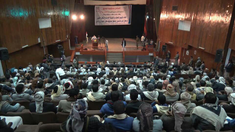 الكلمات والمشاركات دعت كل قبائل اليمن للنفير العام والتوجه الی جبهات العزة والكرامة للتنكيل بالإعداء والی رفد الجبهات بالمقاتلين الاشداء وقوافل العطاء حتی النصر والانتصار