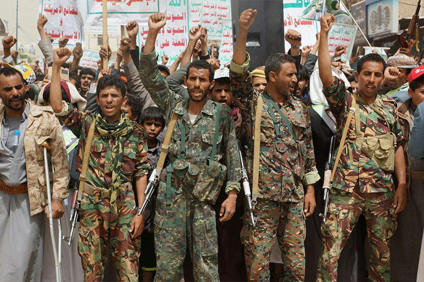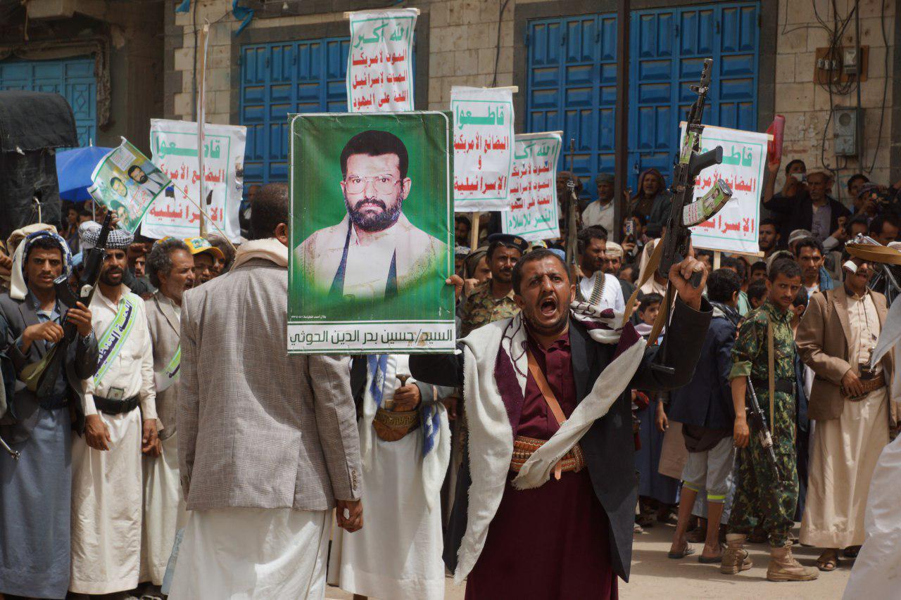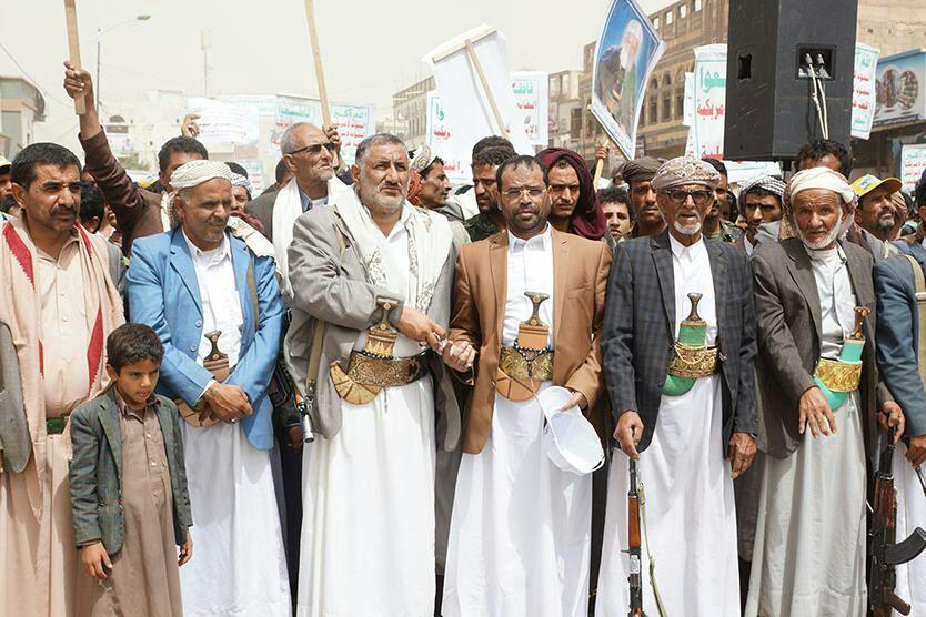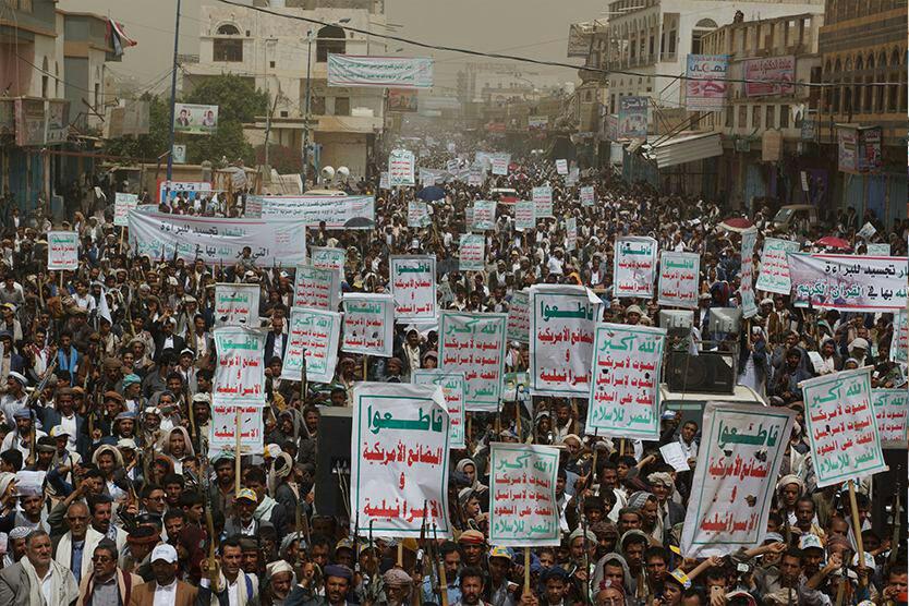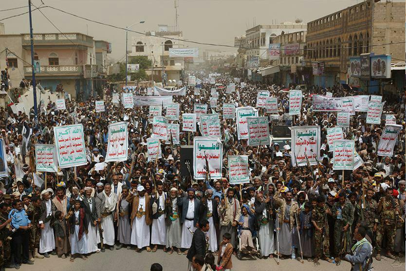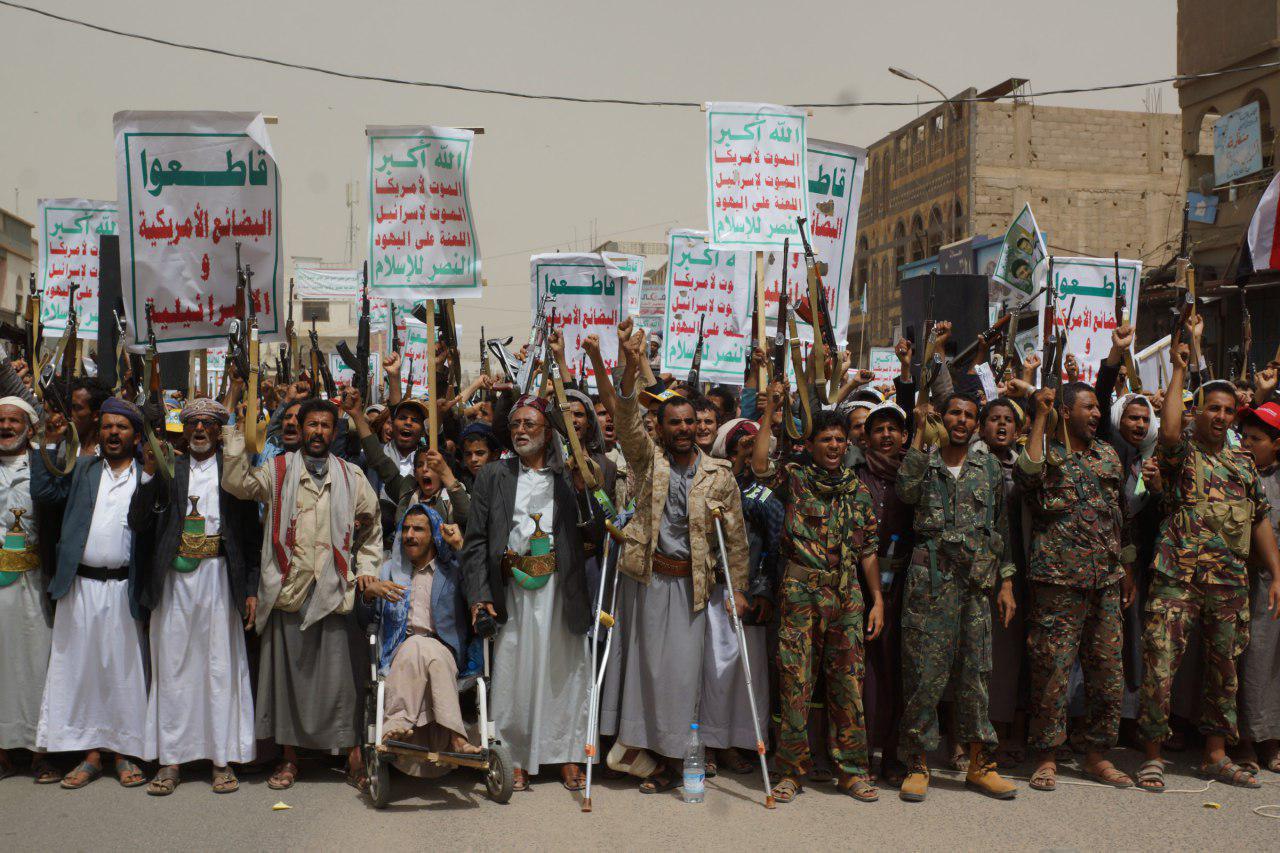 وردد المتظاهرون هتافات الحرية (الله أكبر.. الموت لأمريكا، الموت لإسرائيل.. اللعنة على اليهود .. النصر للإسلام)، و(من يقتل شعبي .. الطيران الأمريكي)، و(أمريكا أكبر منكر.. أمريكا الشيطان الأكبر)، و(أكبر اجرام عالمي.. أمريكي إسرائيلي)، (صرخة واجهة التهديد.. والإستعمار الجديد)، (شعارنا والصرخات.. كشفت زيف التهديدات).