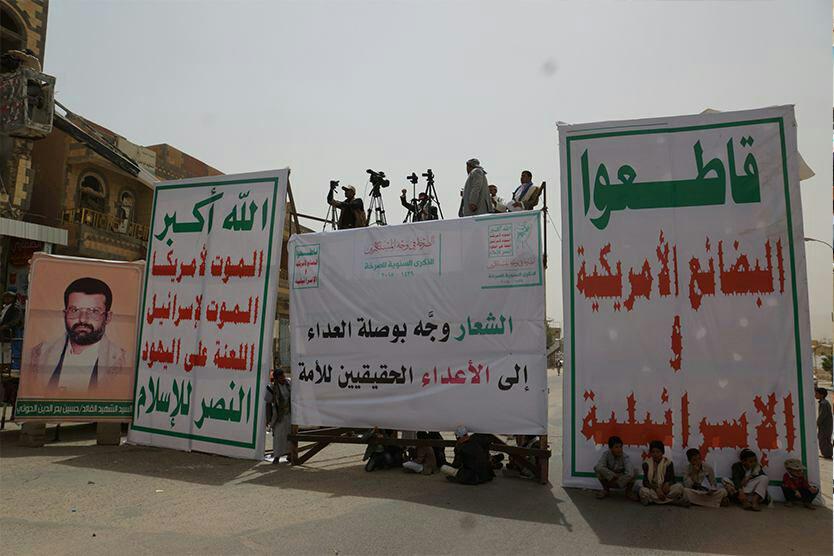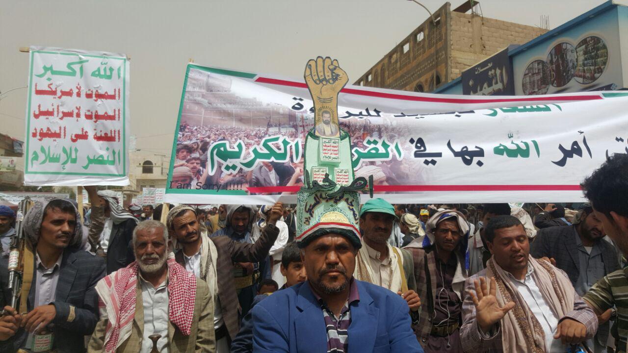 ورفع المتظاهرون لافتات وشعارات المناسبة، ولافتات الحرية وصور الشهيد القائد حسين بن بدرالدين الحوثي وقائد الثورة السيد عبدالملك بن بدرالدين الحوثي، كما رفعوا لافتات تطالب بمقاطعة البضائع الأمريكية والإسرائيلية.