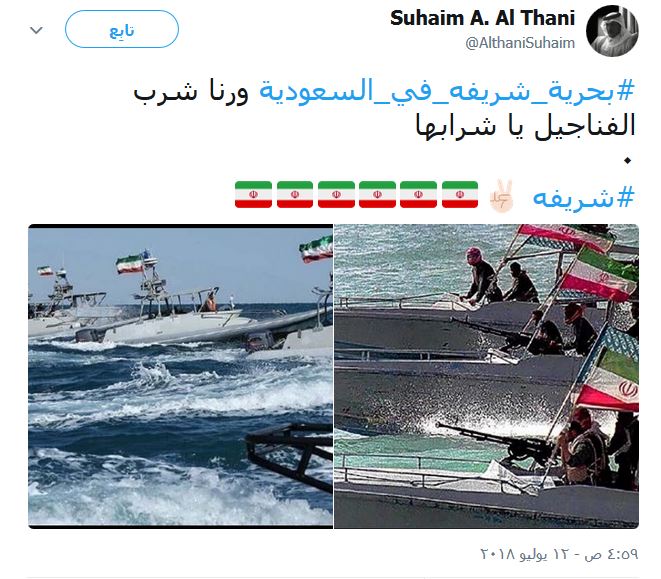 وتحت هاشتاق #بحريه_شريفه_في_السعوديه سخر ناشطون من الشكوى السعودية وتساءلوا عن أنه في حال صحة الإدعاءات السعودية عن “دخول قوارب ايرانية لمياهها الاقليمية” فلماذا لم ترد؟! وأين كانت البحرية السعودية؟!