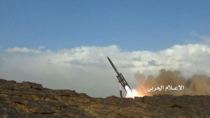 أطلقت القوة الصاروخية اليمنية، اليوم الخميس،، صاروخين باليستيين من طراز “بدر1” على مطار جيزان الإقليمي، وآخر قصير المدى على تجمعات قوى العدوان في الساحل الغربي.