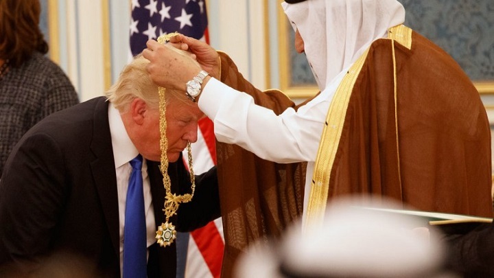 واستذكر الكاتب ما قاله ترامب عن السعودية، حيث وصفها بأنه دولة مرتبطة بالإرهابيين وتتعامل مع الأمريكيين بوصفهم حراساً شخصيِّين للعائلة المالكة، كما يستذكر الكاتب ما قاله وزير الدفاع الأمريكي السابق، روبرت غيتس، عقب اجتماعه مع الملك عبد الله: “لقد أراد منا هجوماً على الأهداف العسكرية الإيرانية، وليس فقط المواقع النووية”.