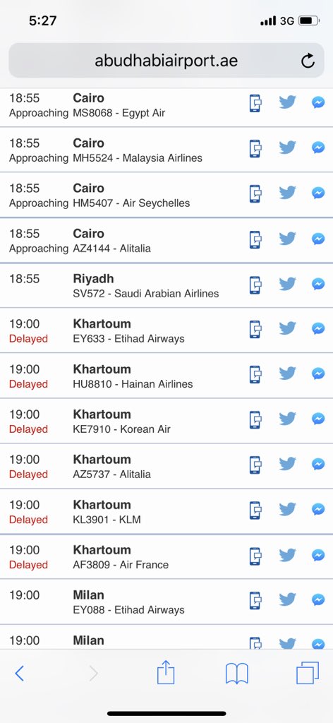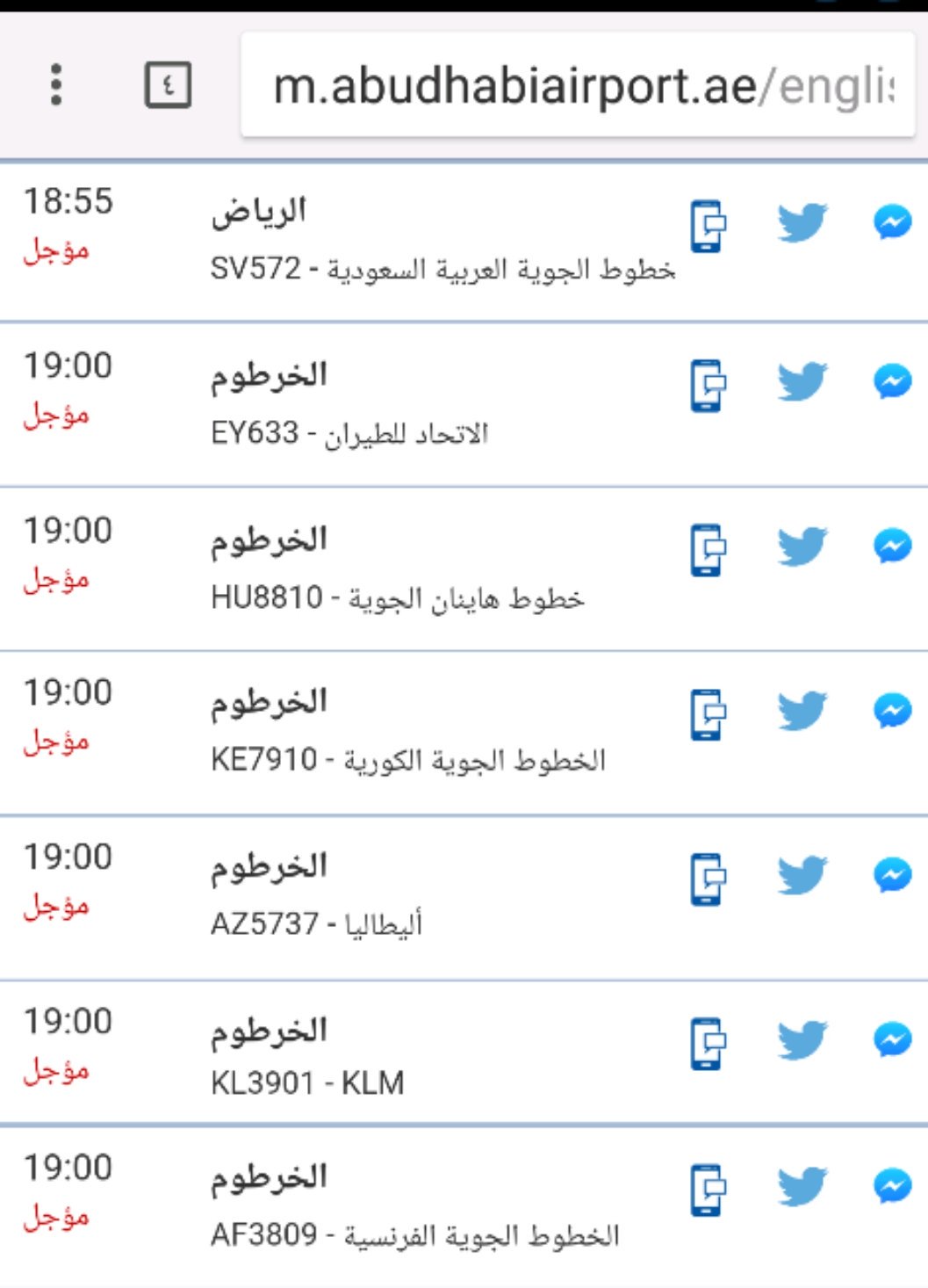 وفي نبأ لاحق اعلنت مصادر ملاحية عن تعطل حركة الملاحة الجوية من وإلى مطار أبو ظبي الدولي.