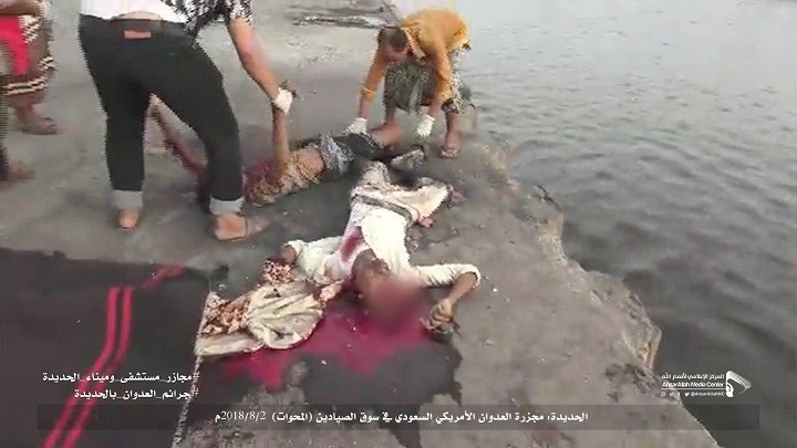 وارتكب طيران العدوان السعودي الأمريكي، الخميس، جريمتين مروعتين استهدفتا مستشفى الثورة وميناء الاصطياد السمكي بالحديدة (غرب) راح ضحيتها أكثر 229 شهيدا وجريحا.