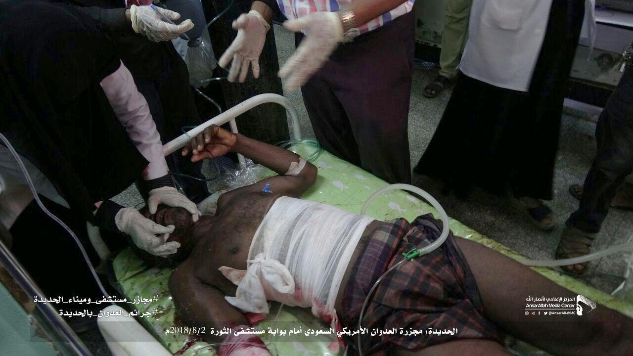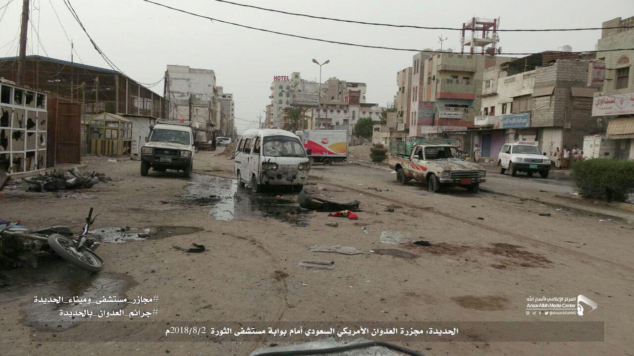 وكان وزير الصحة اليمني أعلن عن استشهاد 55 شخصا وجرح أكثر من 130 اخرين اثر جريمة قصف تحالف العدوان السعودي سوق السمك ومستشفى الثورة بالحديدة.. ووجهت هيئة المستشفى نداء استغاثة الى اليمنيين، حيث دعا مدير المستشفى المواطنين الى التبرع بالدم.