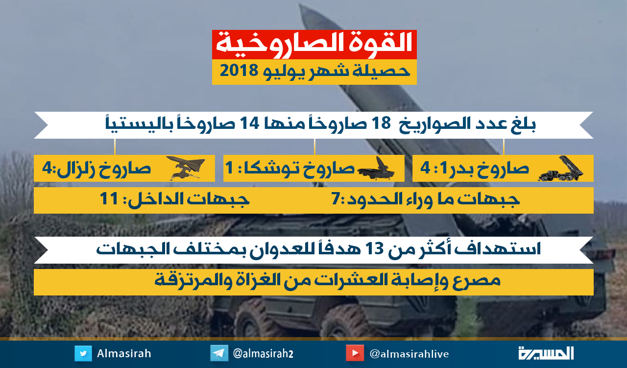 حصيلة عمليات القوة الصاروخية اليمنية لشهر يوليو 2018 (إنفوغرافيك) On أغسطس 6, 2018 480 Share متابعات: 480 Share FacebookTwitterGoogle+ReddItWhatsAppPinterestEmail