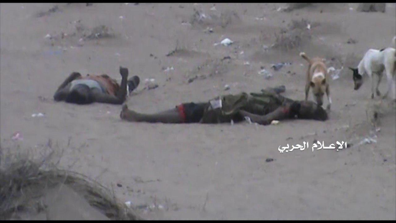 كما وثقت المشاهد جثث من مرتزقة العدوان الذي لاقوا مصارعهم أثناء عملية الاستدراج النوعية بأطراف الدريهمي، بينهم قيادات.
