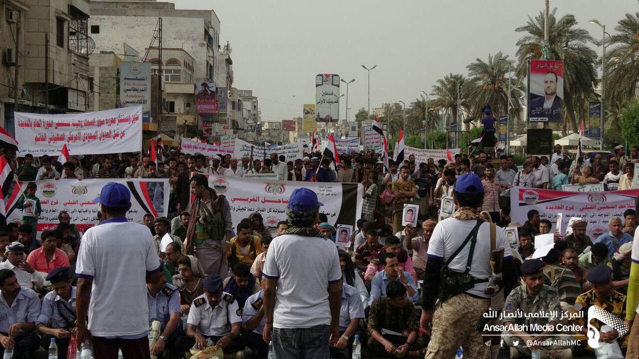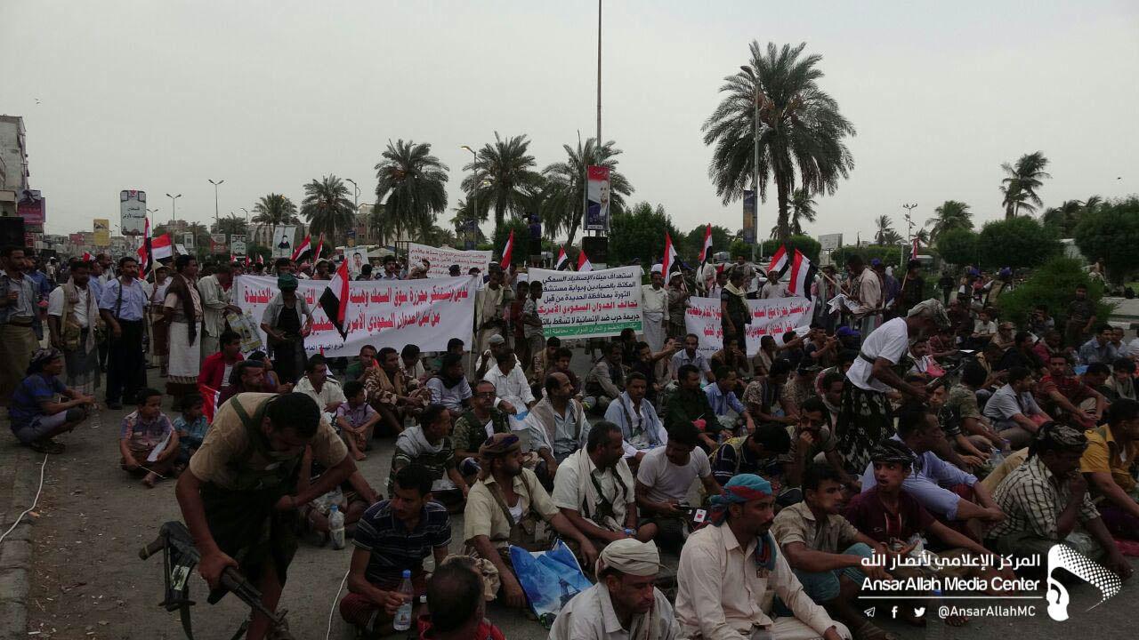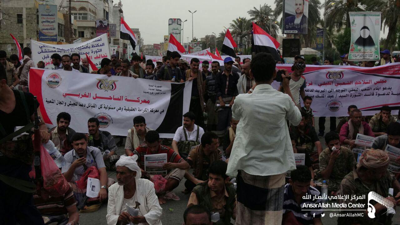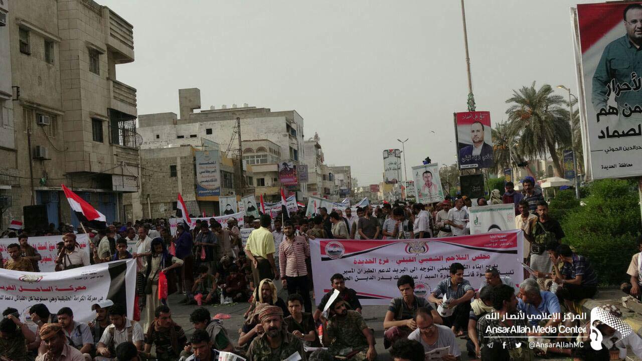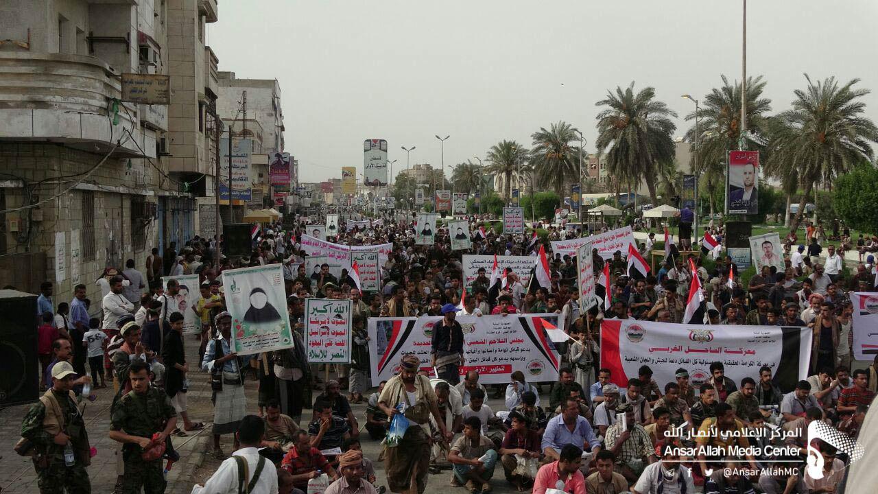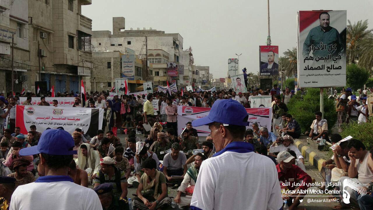 مسيرة حاشدة في #الحديدة تحت شعار “جرائمكم لن تمر ودماؤنا ستنتصر” + (صور)