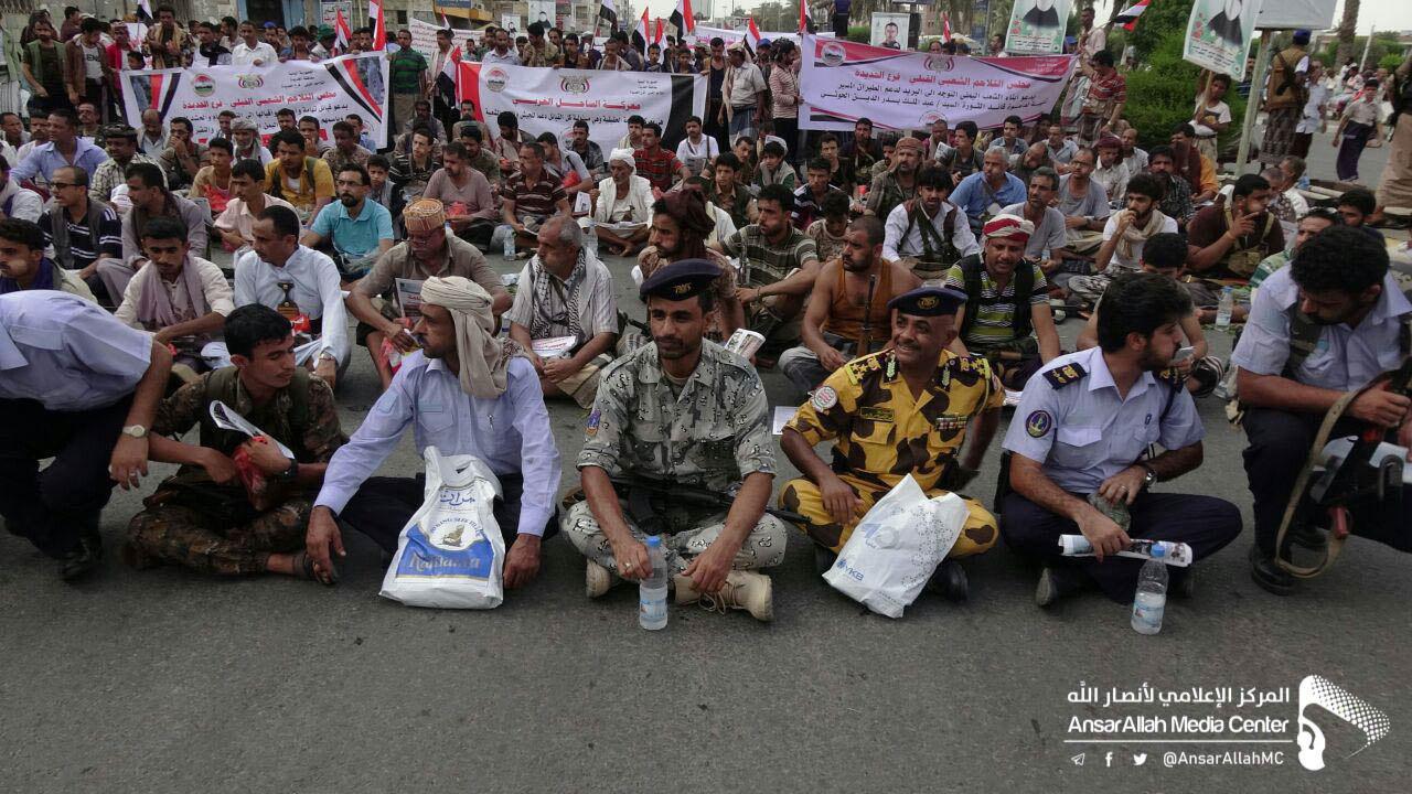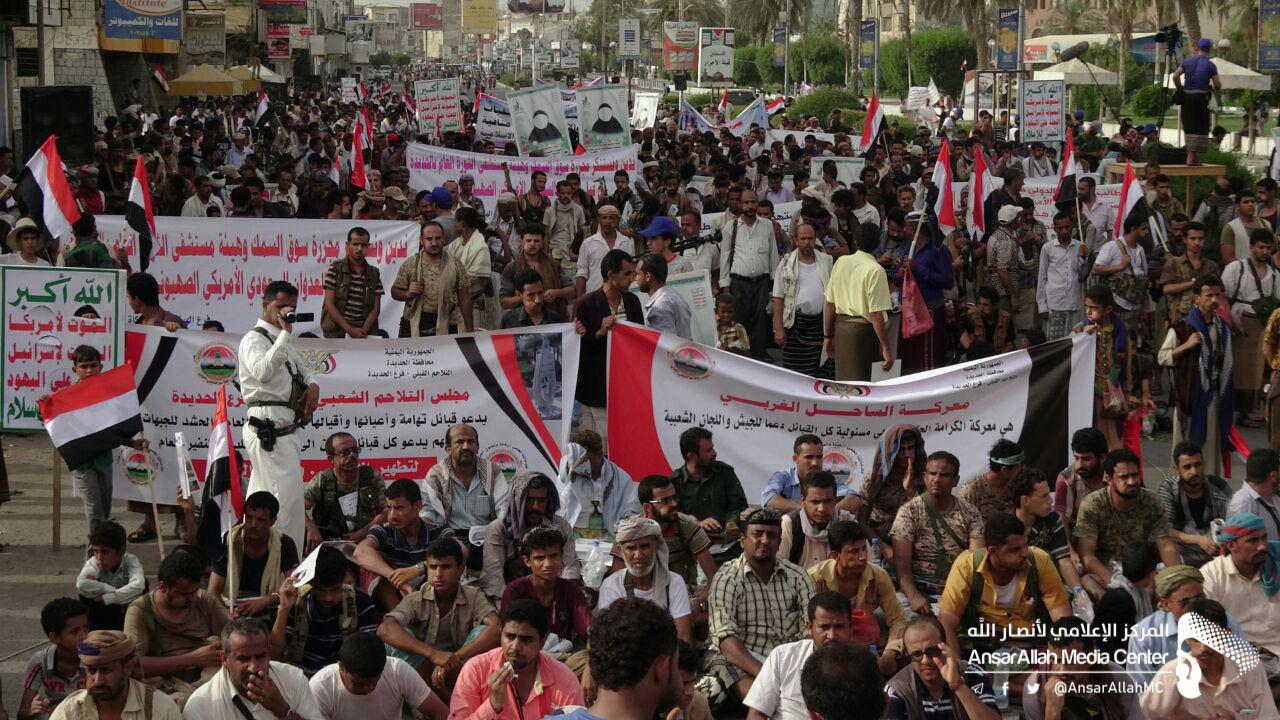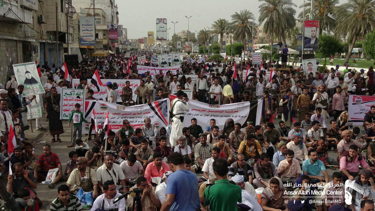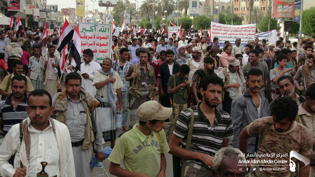 المشاركون في المظاهرة رفعوا شعارات التنديد والاستنكار بجرائم العدوان الأمريكي السعودي ومرتزقته المستمرة منذ أكثر من 3 سنوات، والتي كان آخرها المجزرة المروعة في سوق الصيادين وأمام مستشفى الثورة العام في الحديدة، حيث أكد الحاضرون أن هذه الجريمة لن تمر دون عقاب يردع الغزاة والمرتزقة.