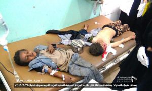 وكتبت اللجنة الدولية للصليب الأحمر في اليمن، في تغريدة عبر «تويتر»: «عشرات القتلى والجرحى في هجوم على باص ينقل أطفالاً في سوق ضحيان في صعدة. تعمل الفرق الطبية في المشفى المدعوم من قبل اللجنة الدولية في اليمن». وتابعت التغريدة «يفرض القانون الدولي الإنساني حماية المدنيين أثناء النزاعات وعدم استهدافهم».