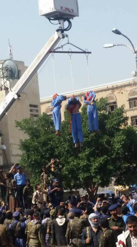 صنعاء.. إعدام 3 مجرمين وتعليق جثثهم في ميدان التحرير لإرتكابهم هذه الجريمة الشنيعة (تفاصيل+صور)