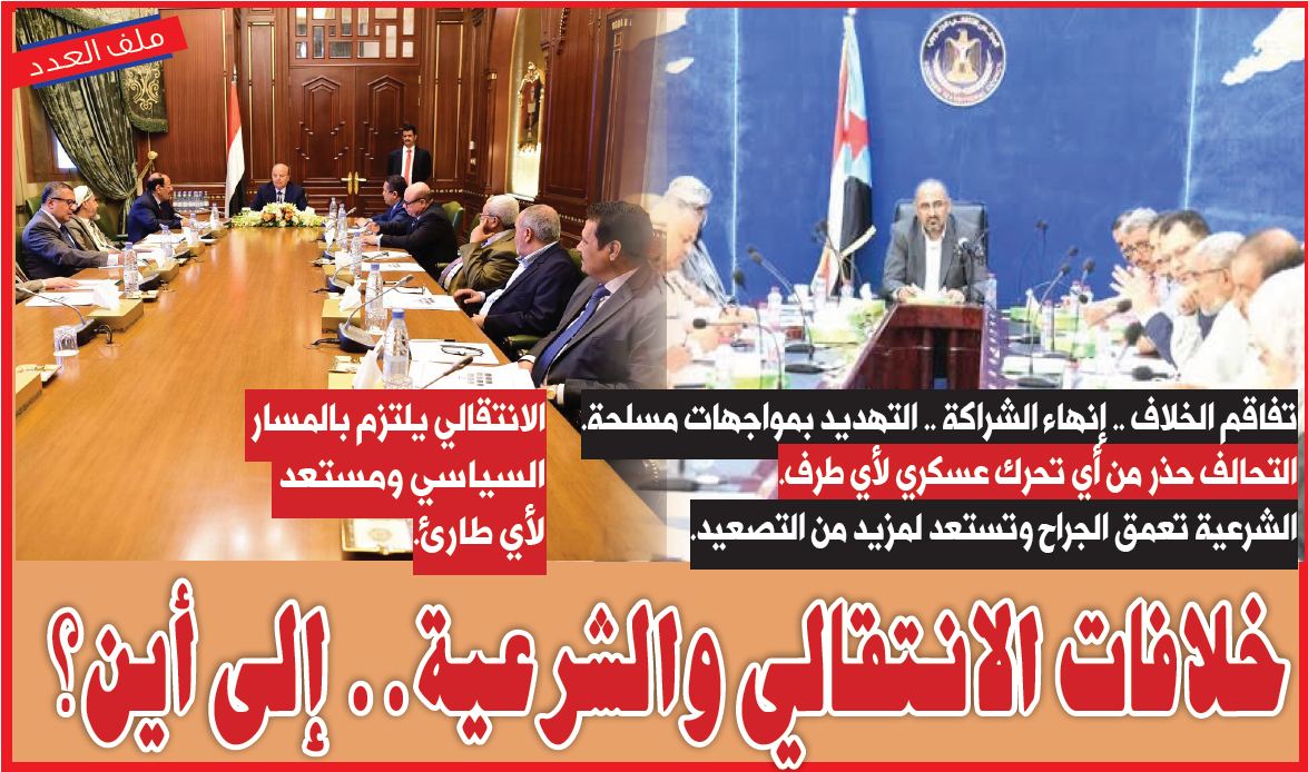 لا يقدمان حلولا ولا يعترفان بالإخفاق .. حكومة هادي والانتقالي صراع الفشل؟