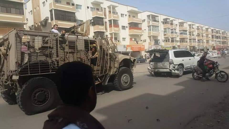وأفادت مصادر محلية أن انفجاراً عنيفاً هز منطقة إنماء شمال غرب عدن، وأسفر عن سقوط قتلى وجرحى من موكب محافظ تعز والسكان المحليين.