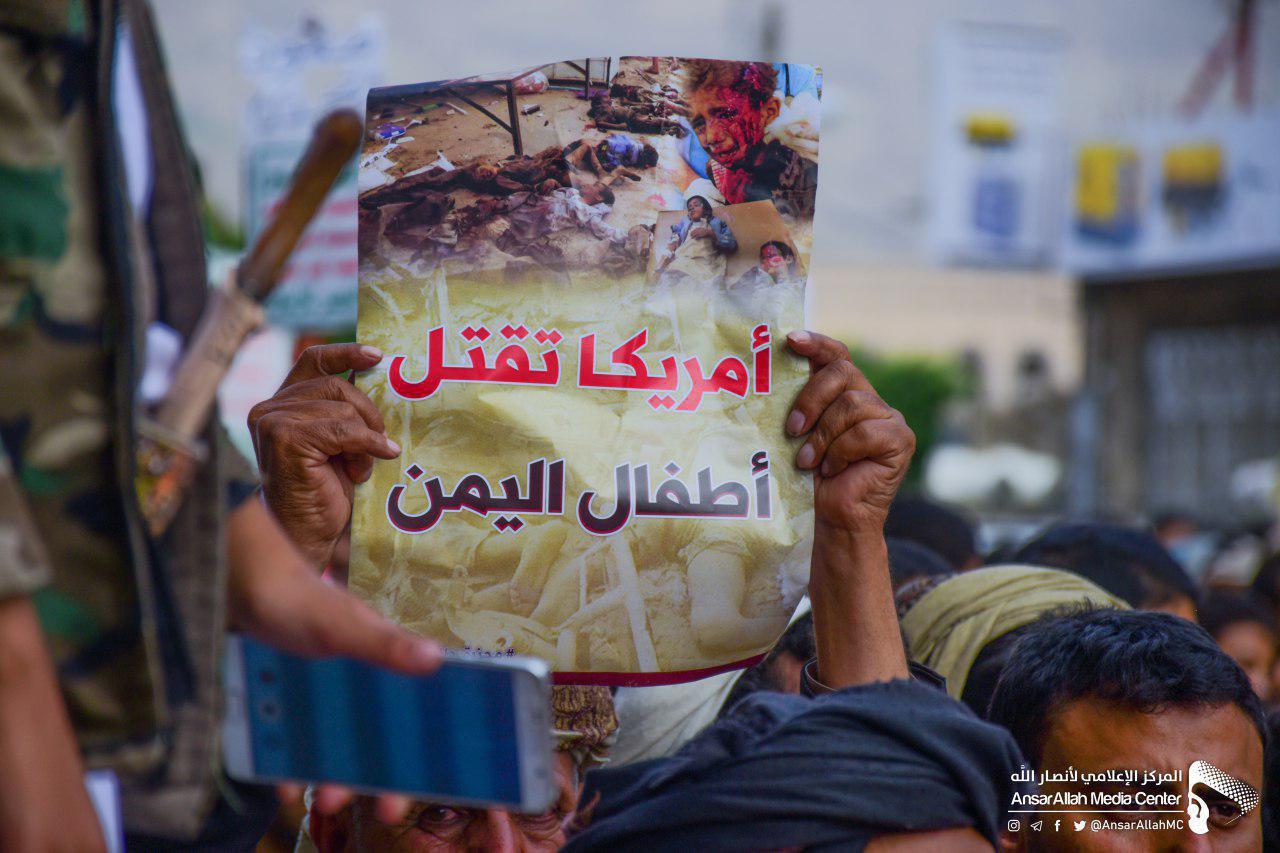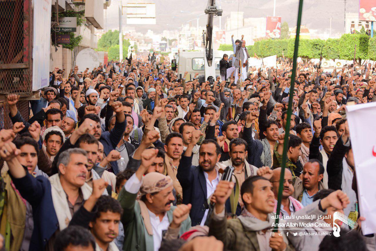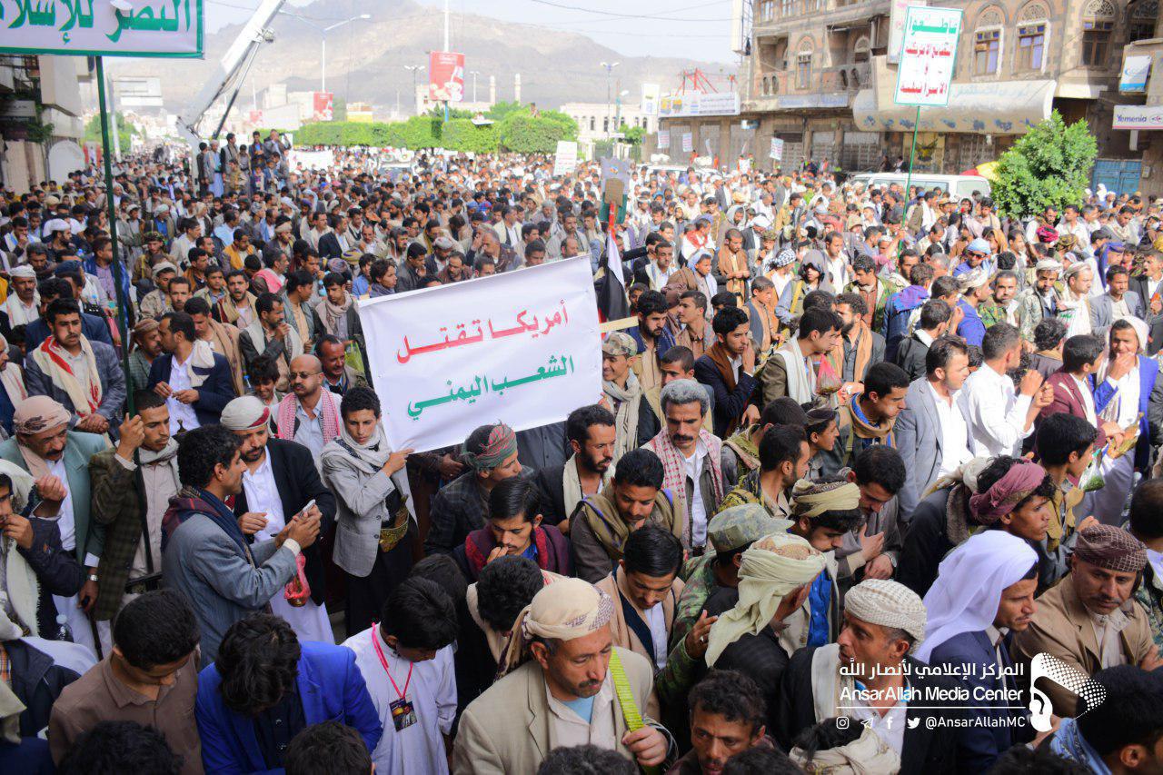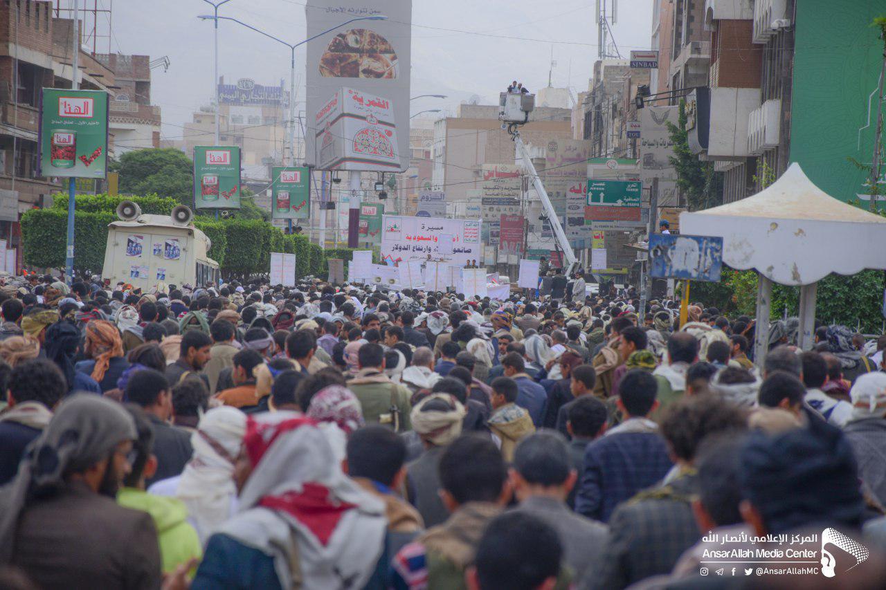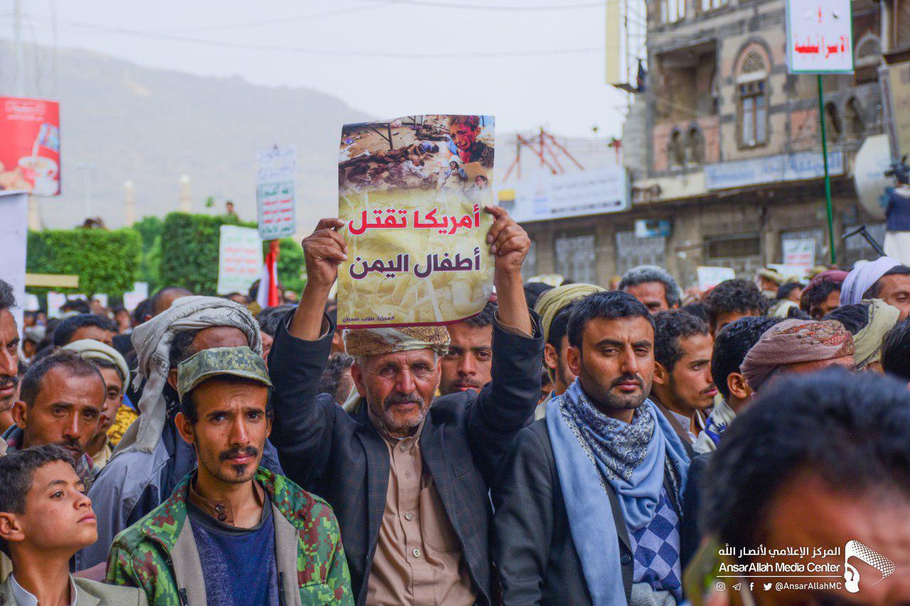 مظاهرات حاشدة في صنعاء تندد بالحصار الاقتصادي وتحمل أمريكا والسعودية المسؤولية (صور)