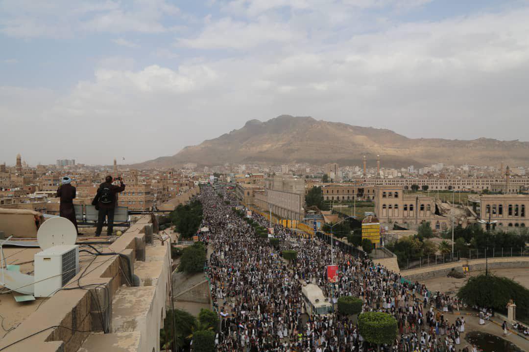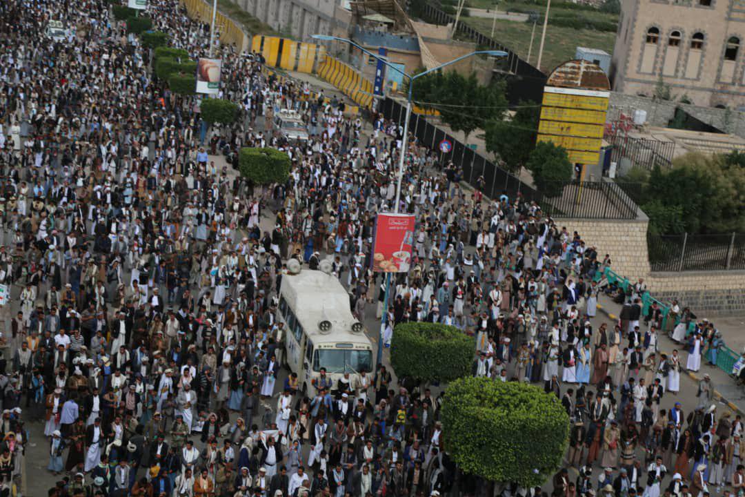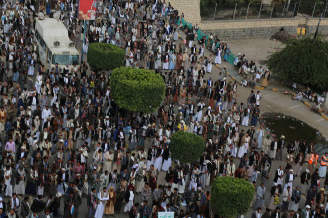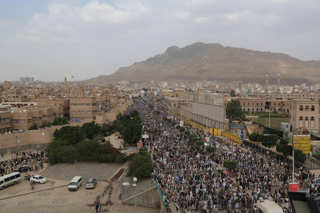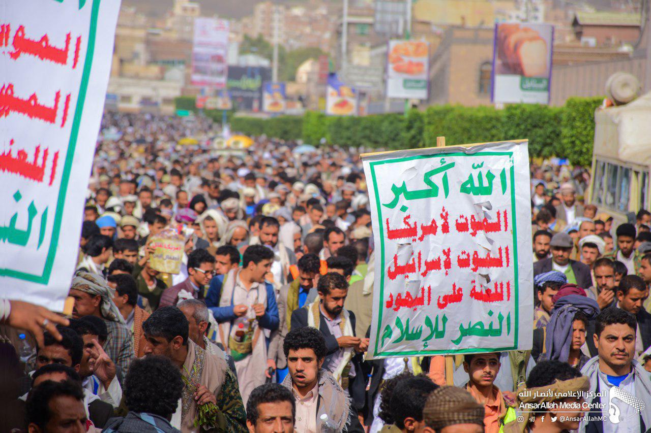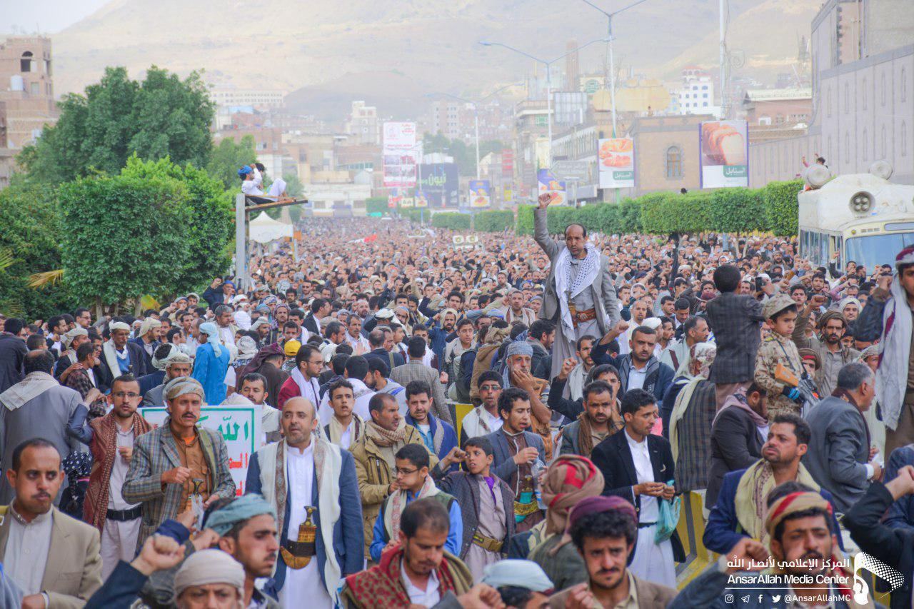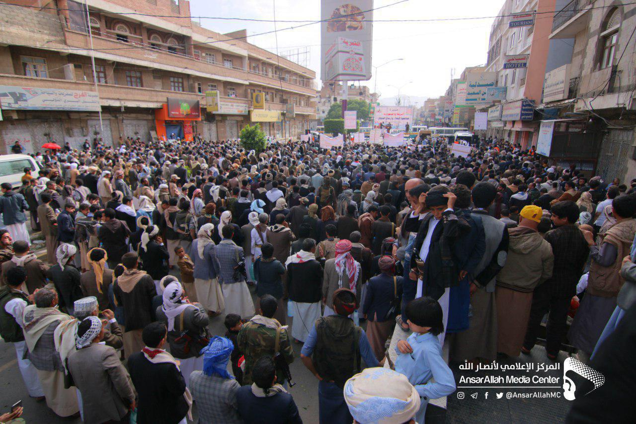 مظاهرات حاشدة في صنعاء تندد بالحصار الاقتصادي وتحمل أمريكا والسعودية المسؤولية (صور)
