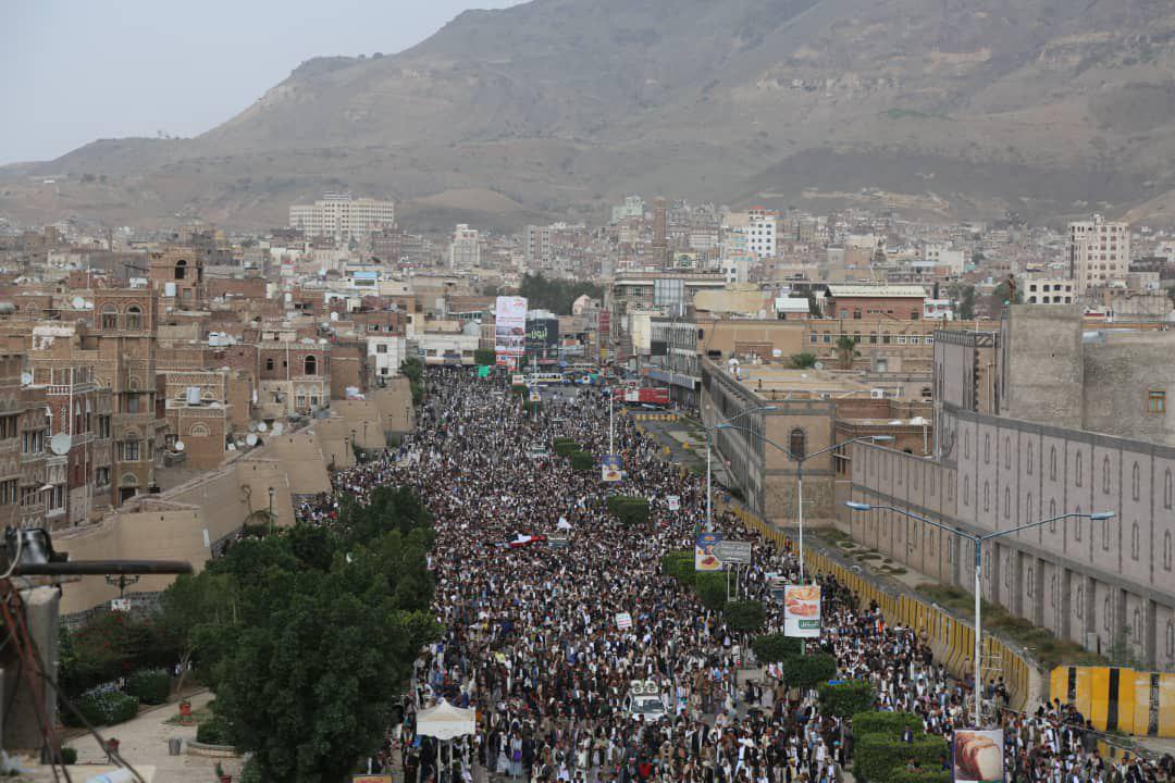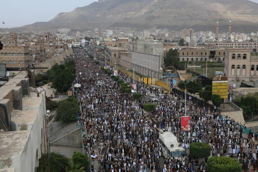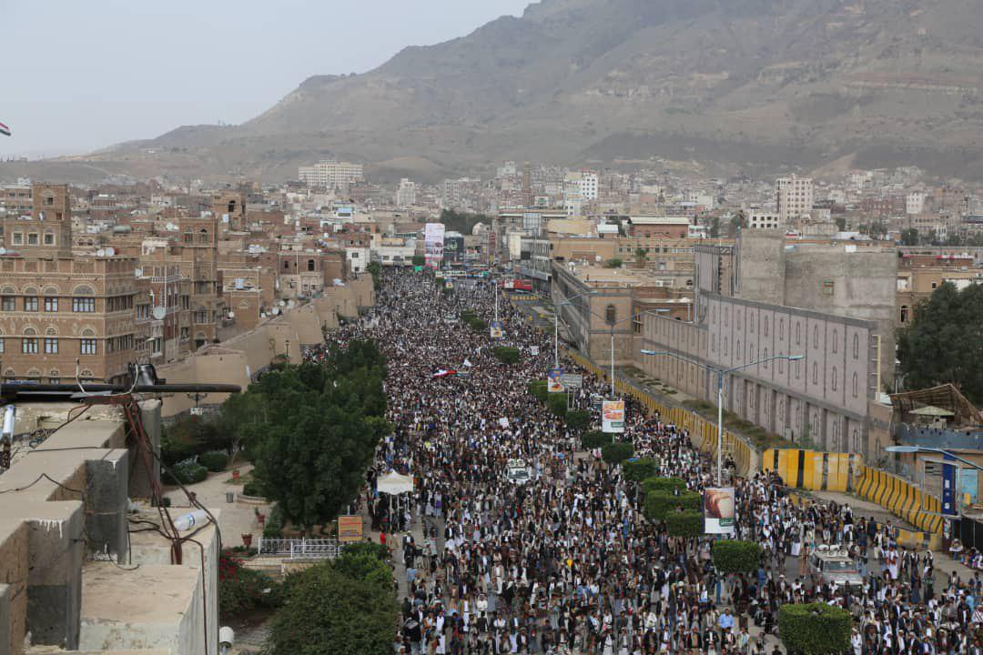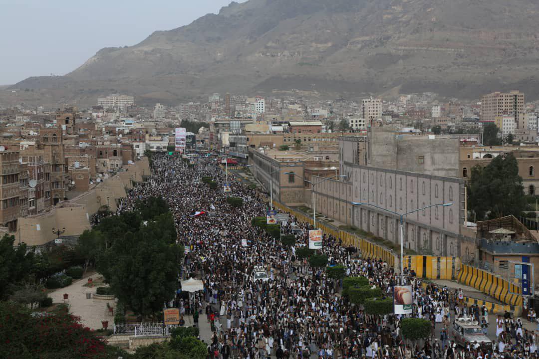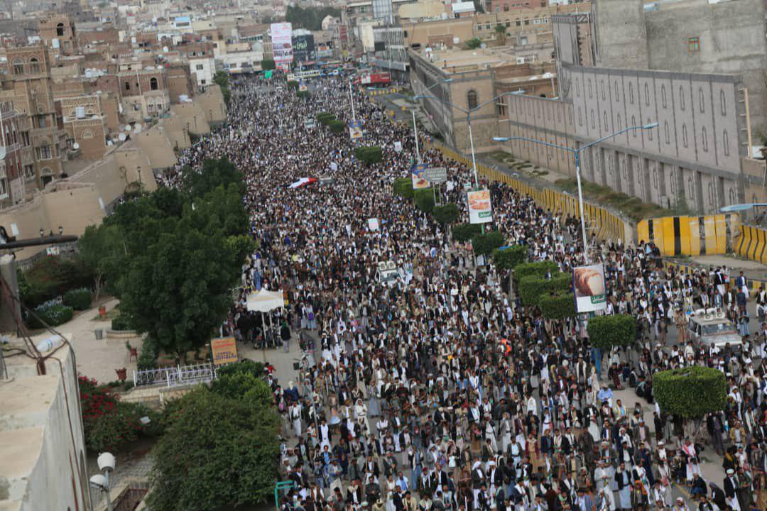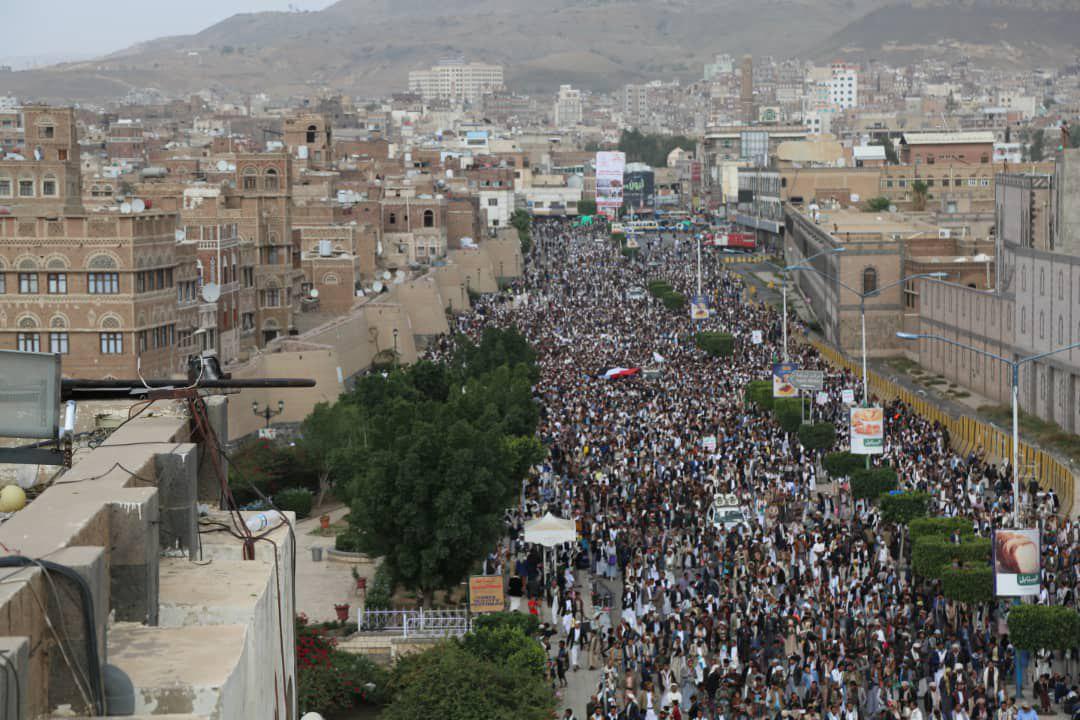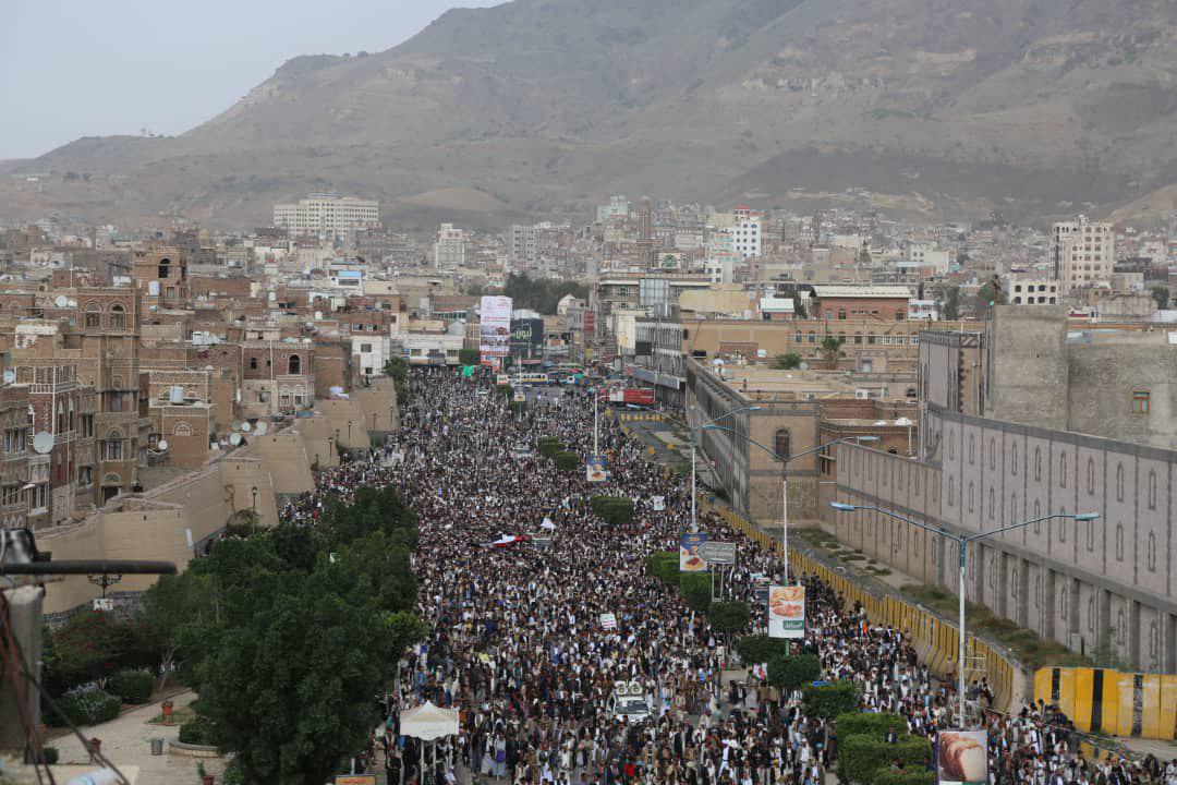 مظاهرات حاشدة في صنعاء تندد بالحصار الاقتصادي وتحمل أمريكا والسعودية المسؤولية (صور)