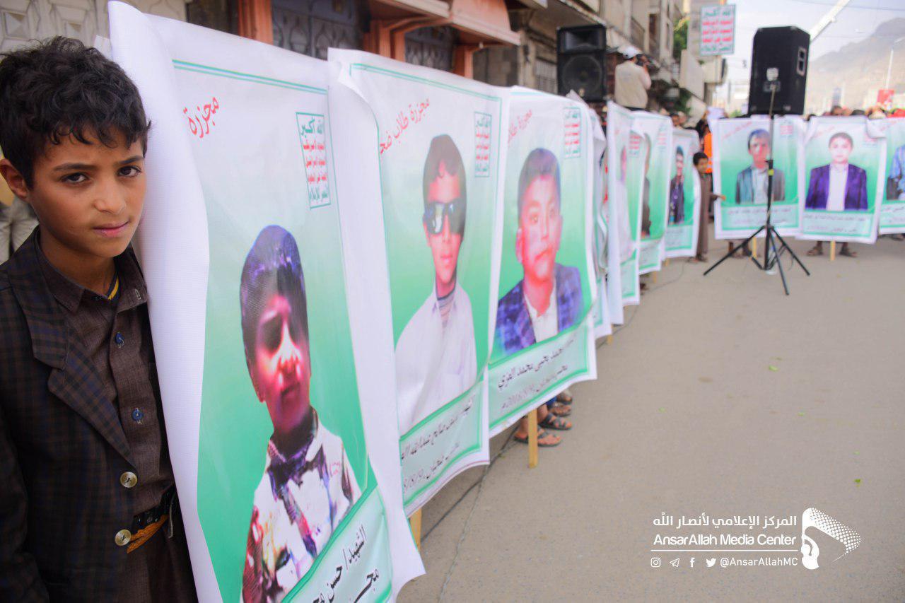وندد البيان باستمرار قوى العدوان في ارتكاب المجازر بحق الشعب اليمني وآخرها الجريمة الوحشية بحق أطفال ضحيان بصعدة والتي راح ضحيتها أكثر من 130 ما بين شهيد وجريح.