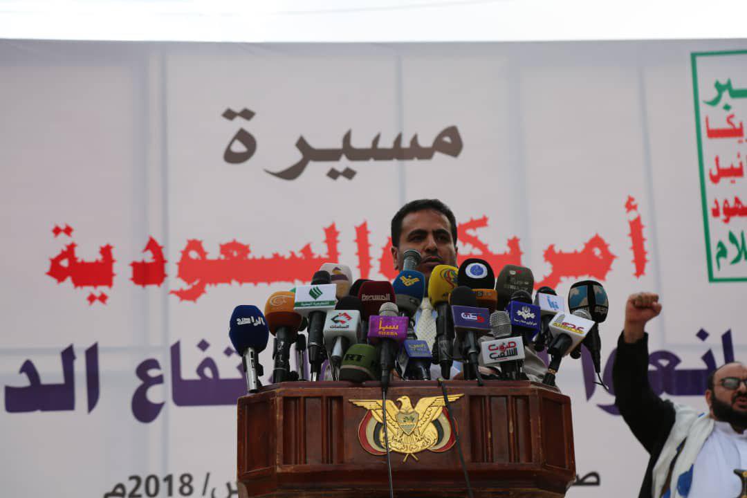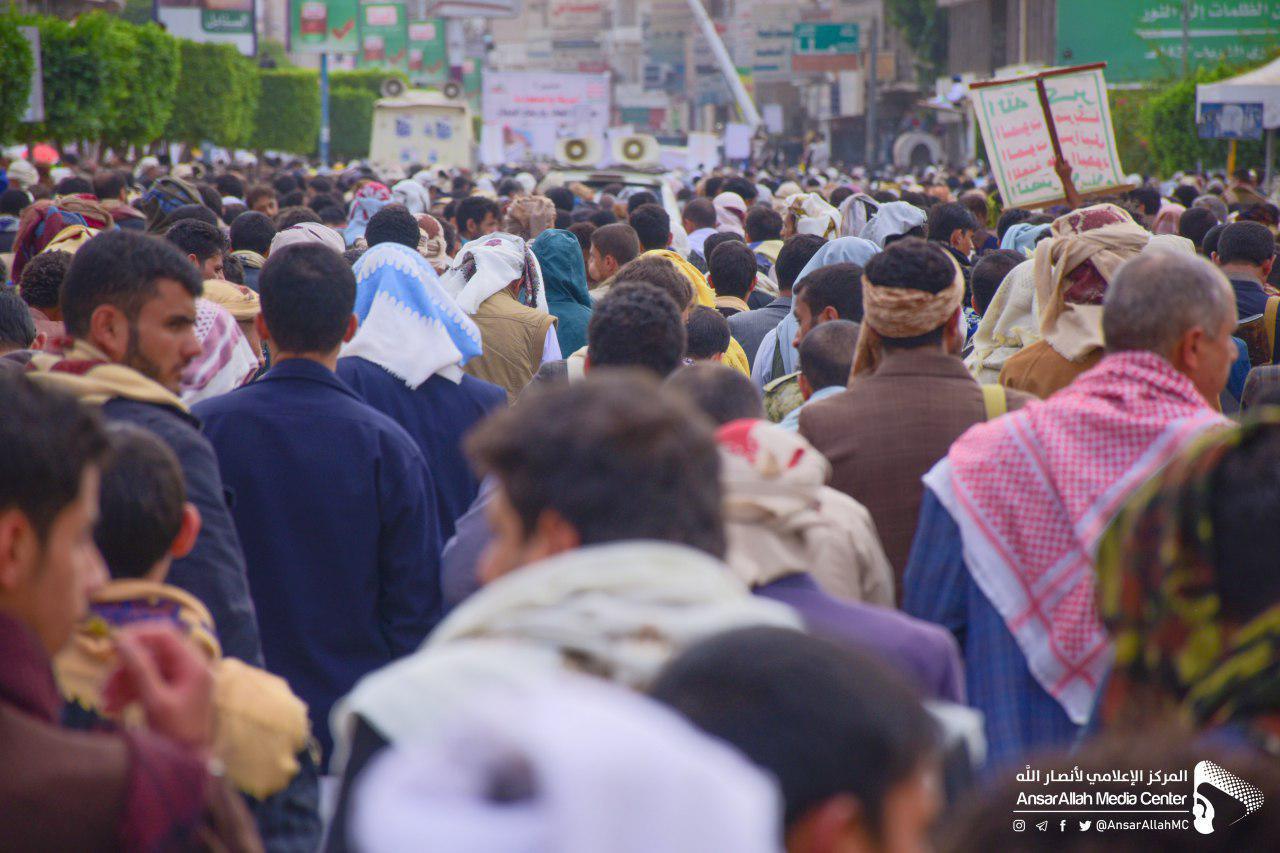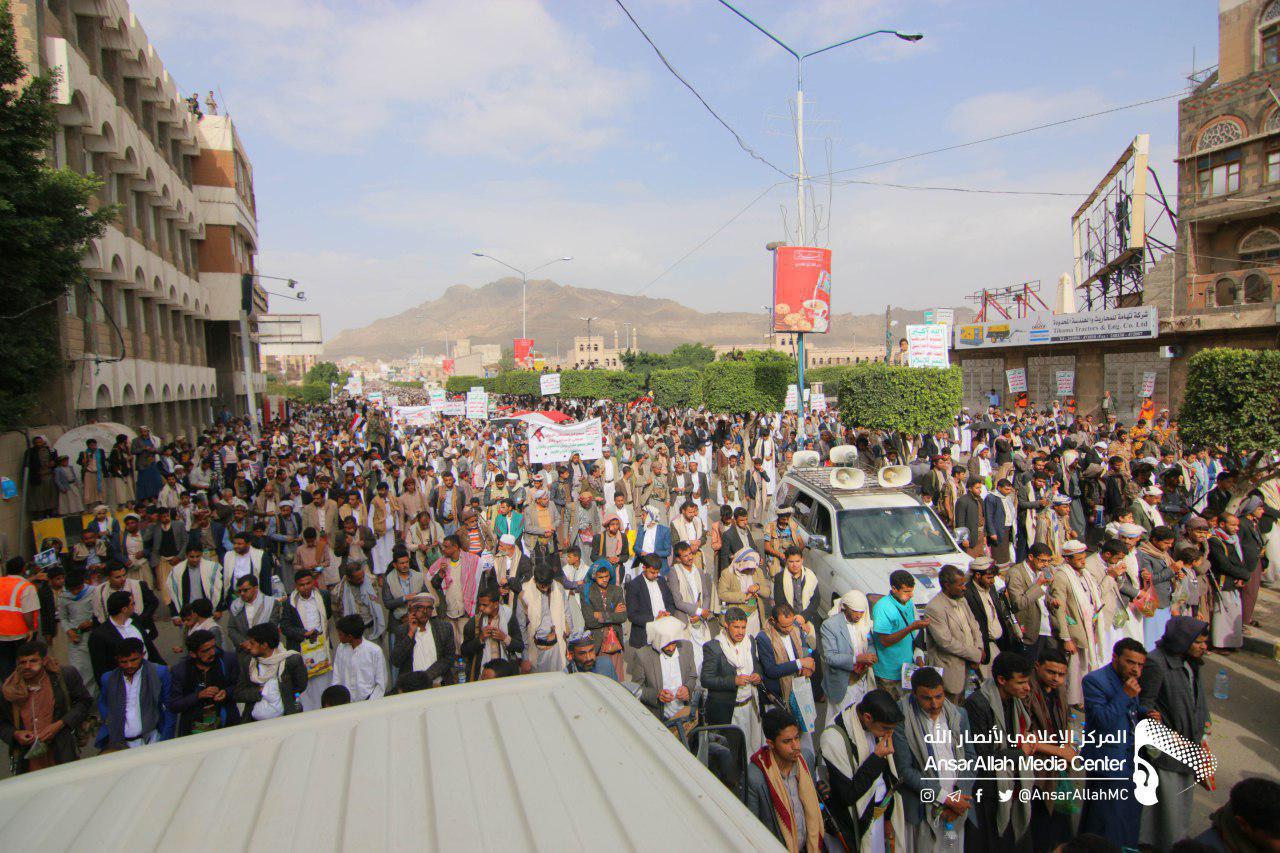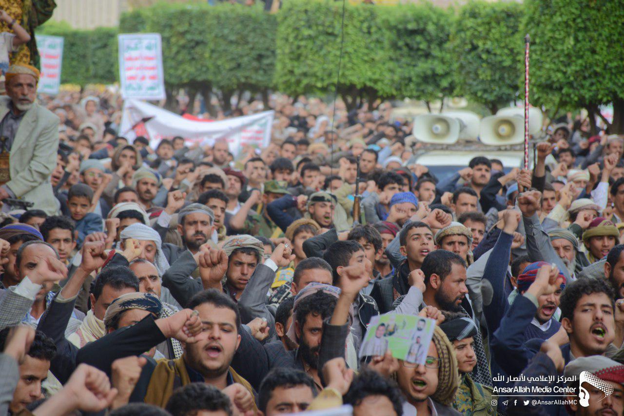 وندد المشاركون في المسيرة بالحرب الاقتصادية التي يقودها تحالف العدوان والهادفة الى تجويع الشعب اليمني بالتزامن مع الحرب العسكرية والحصار الخانق الذي يتعرض له البلد على مدى أربعة أعوام.