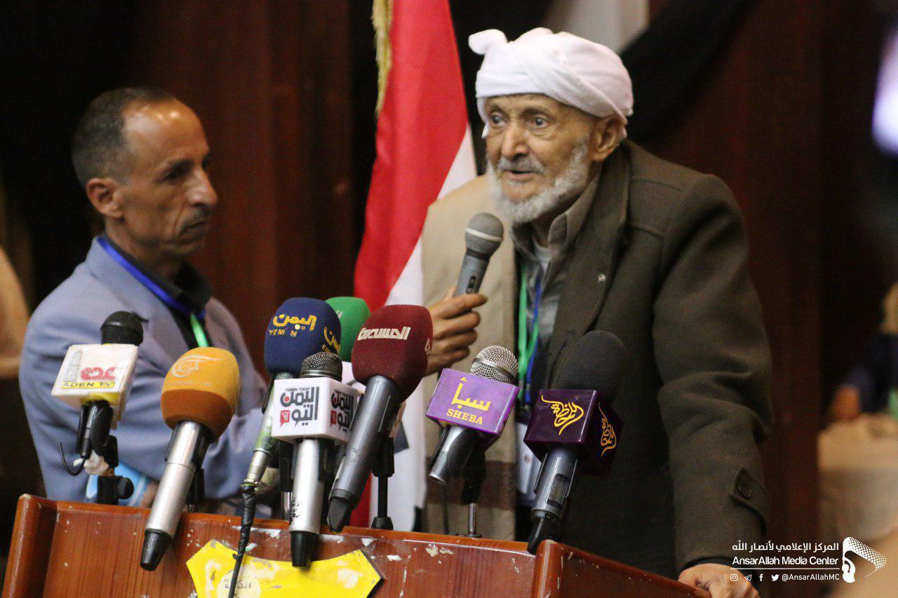 وبارك تمديد الفترة الرئاسية للأخ مهدي المشاط رئيس المجلس السياسي الأعلى .. معبرا عن الشكر لرئيس مجلس التلاحم القبلي ضيف الله رسام لرعاية لهذا اللقاء.