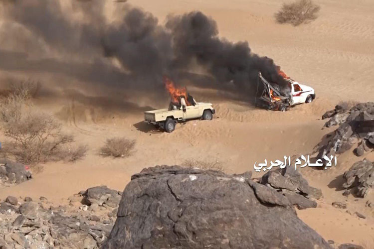 وأضاف المصدر أنه تم تدمير آلية لمرتزقة العدوان بعبوة ناسفة في صحراء الأجاشر ما أدى إلى مصرع من كان على متنها.