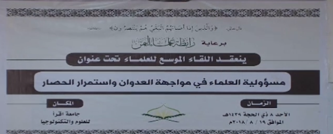 ودعا علماء اليمن كل الأحرار في العالم وفي مقدمتهم قادة وعلماء المسلمين لرفع أصواتهم والقيام بواجبهم الانساني والديني أمام ما يتعرض له اليمن من جرائم من قبل العدوان.