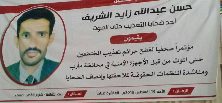وأضافت أسرة المجني عليه حسن الشريف أنها قبل أيام وصل إليها خبر بوجود جثته في ثلاجة هيئة مستشفى مأرب وبعد التحري وجمع المعلومات تبين أنه توفي بعد أيام من اعتقاله نتيجة التعذيب البشع في سجون الميليشيات بالمحافظة وفق ما أفاد به شهود كانوا متواجدين معه في السجن أيام اعتقاله وتعذيبه.